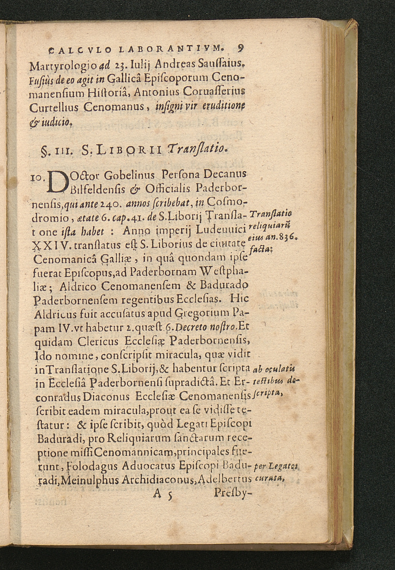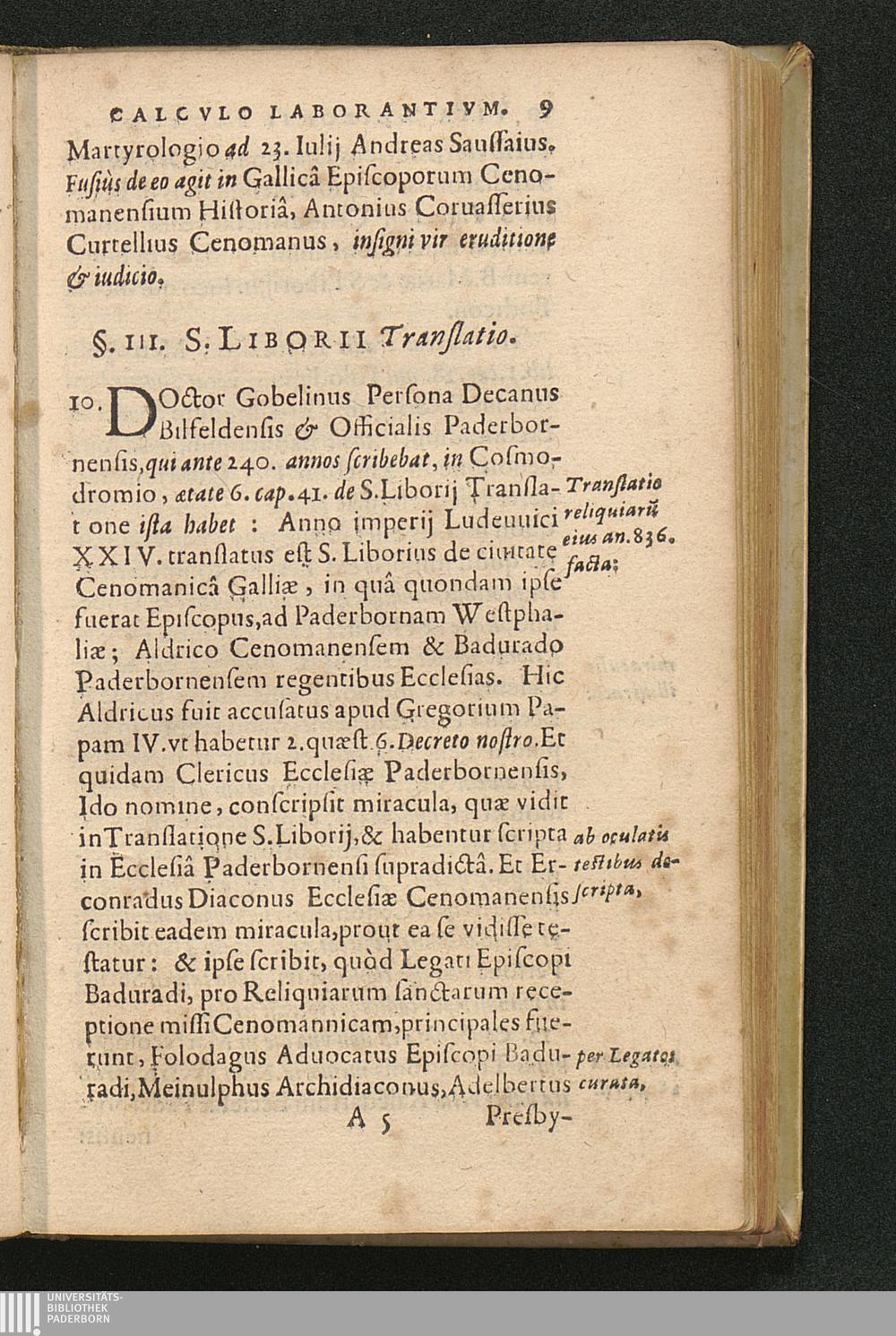 De Sancto Liborio Episcopo Cenomanensi In Gallia, Tvtelari Vrbis Paderbornae In Westphalia,[...]