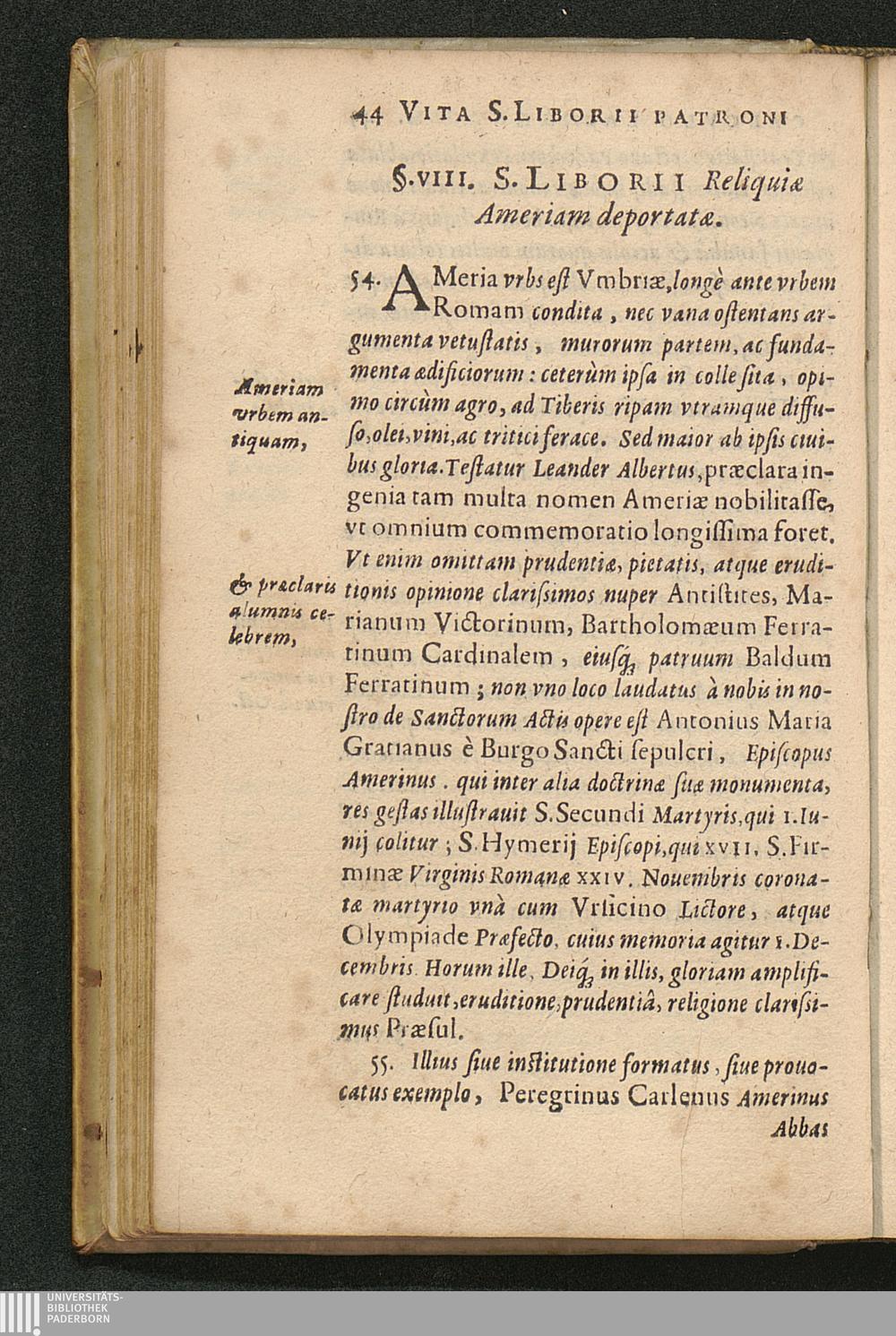 De Sancto Liborio Episcopo Cenomanensi In Gallia, Tvtelari Vrbis Paderbornae In Westphalia,[...]