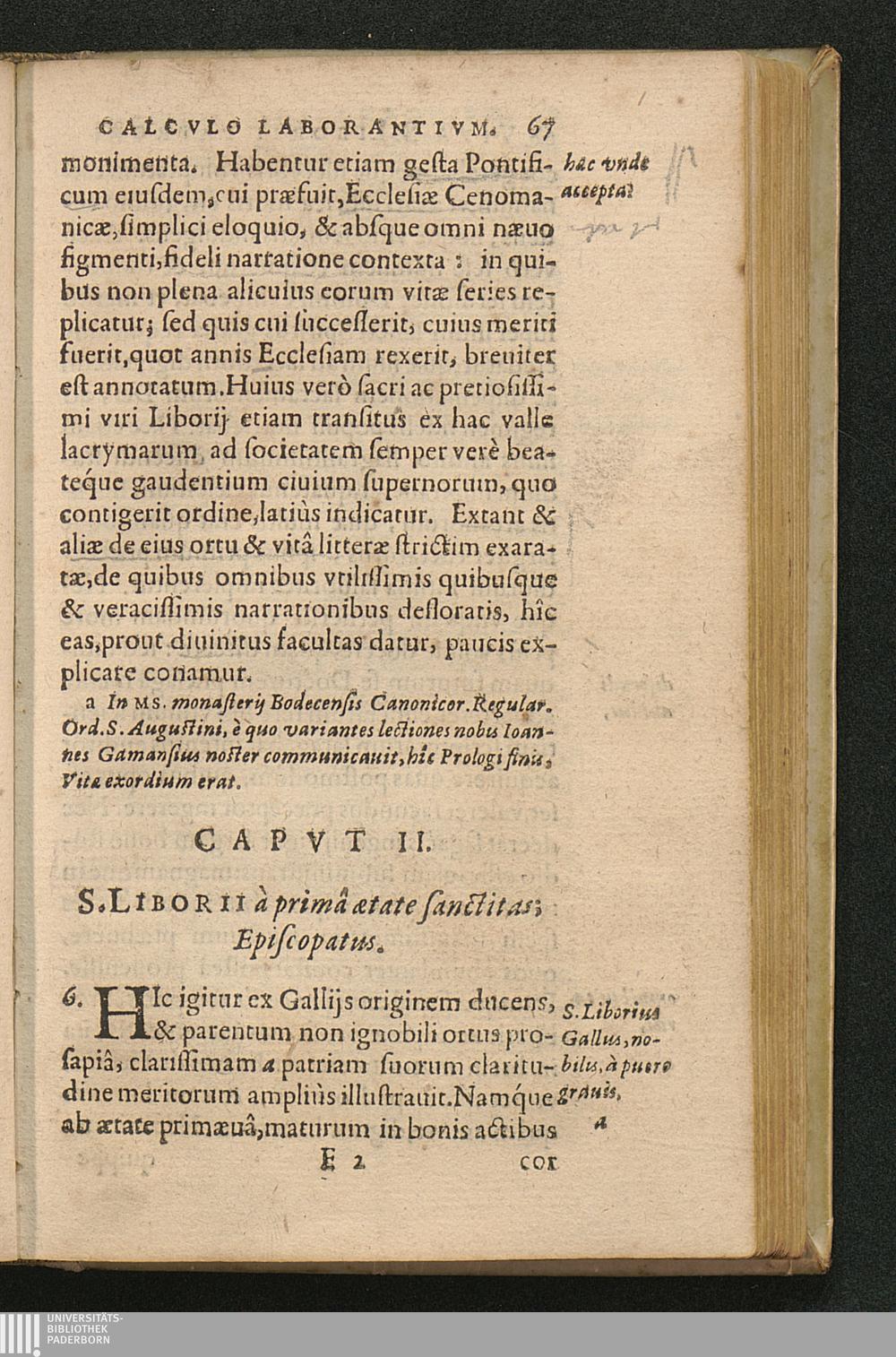 Vita S. Liborii Episcopi, Calcvlo Laborantivm Patroni / E veteribus Mss. eruta, & commentario historico illustrata A Ioanne Bollando E Societate Iesv