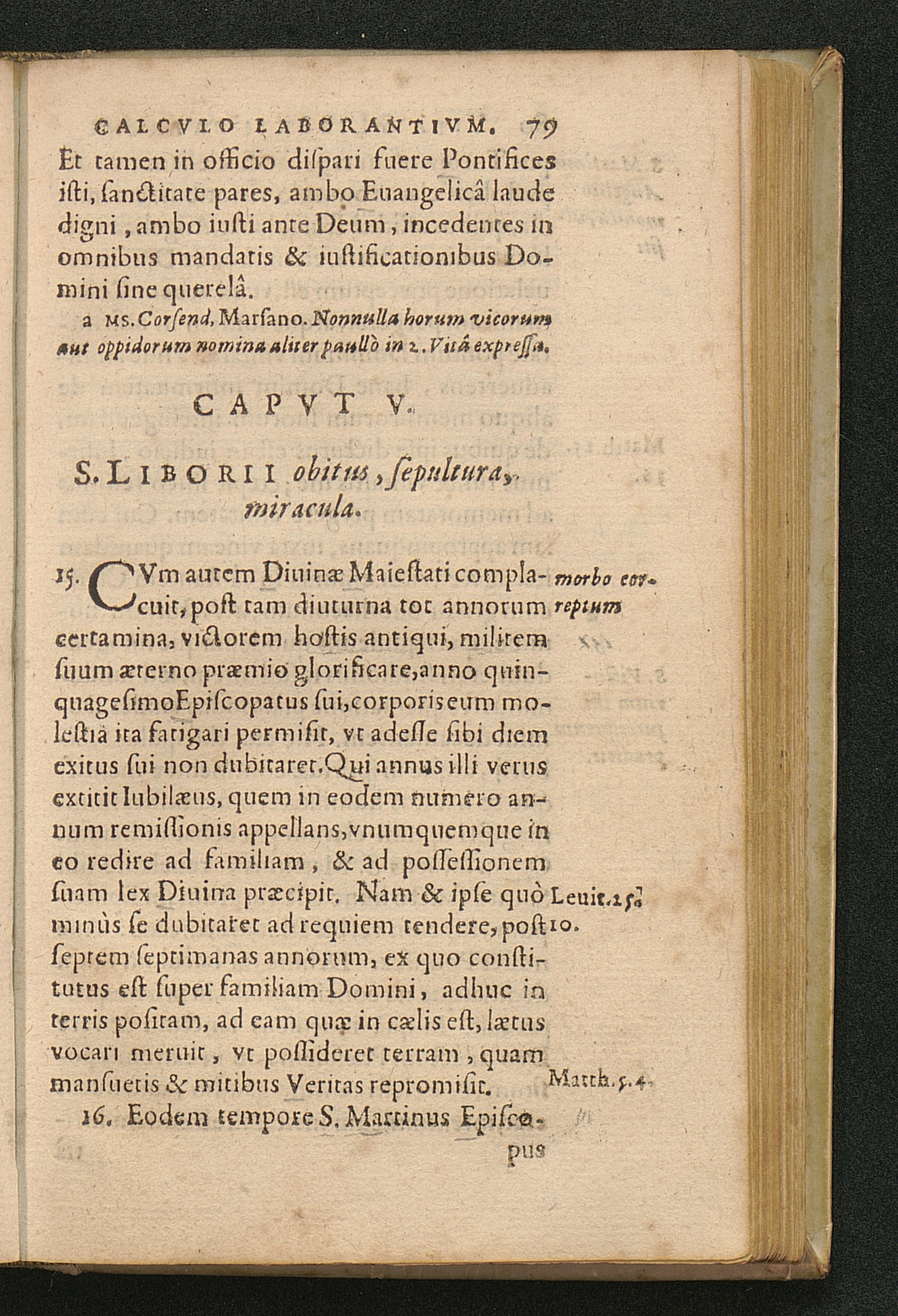 Vita S. Liborii Episcopi, Calcvlo Laborantivm Patroni / E veteribus Mss. eruta, & commentario historico illustrata A Ioanne Bollando E Societate Iesv