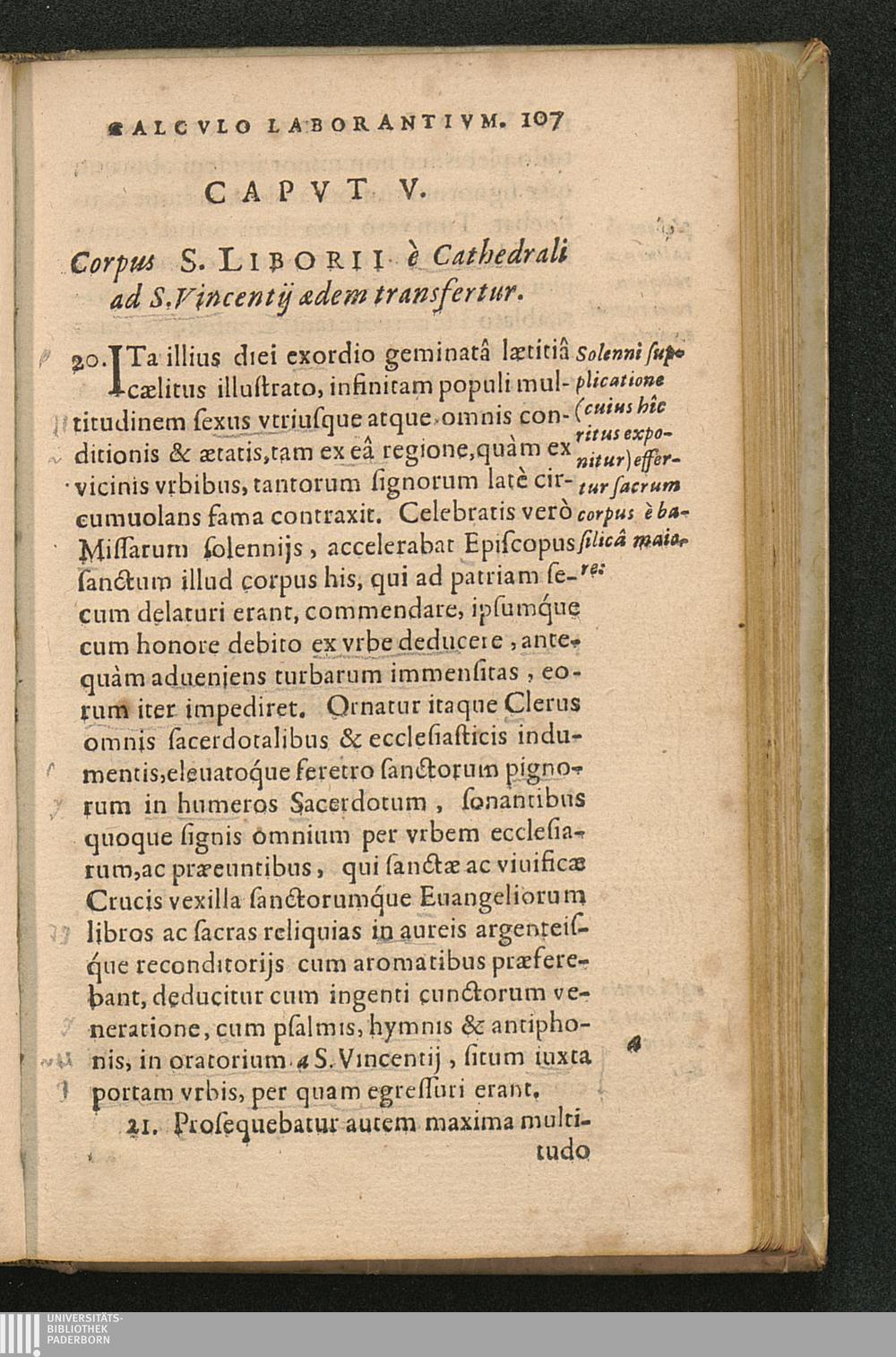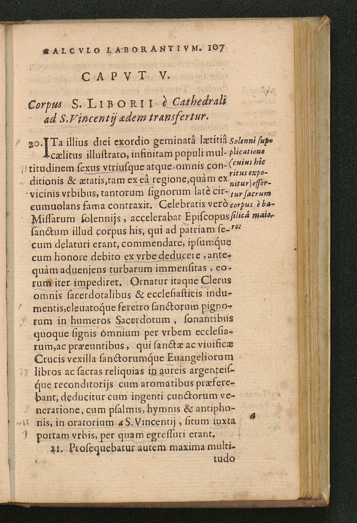 Capvt V. Corpus S. Liborii è Cathedrali ad S. Vincentij aedem transfertur.
