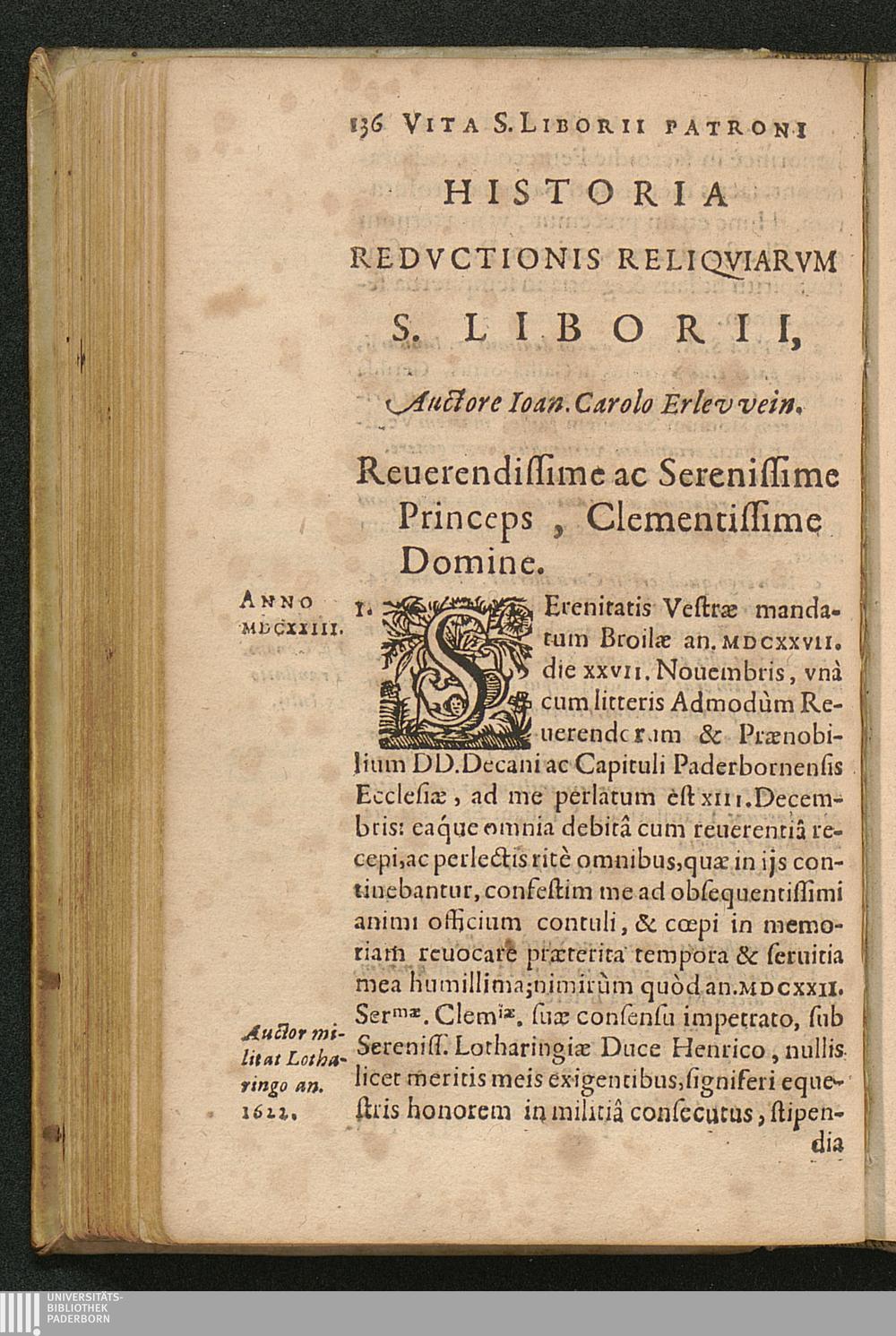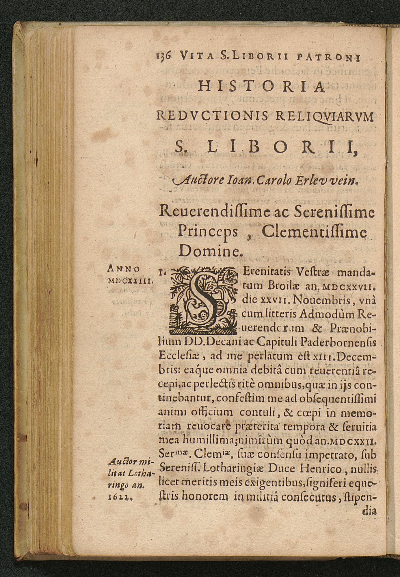Historia Redvctionis Reliqviarvm S. Liborii, Auctore Ioan. Carolo Erlevvein.