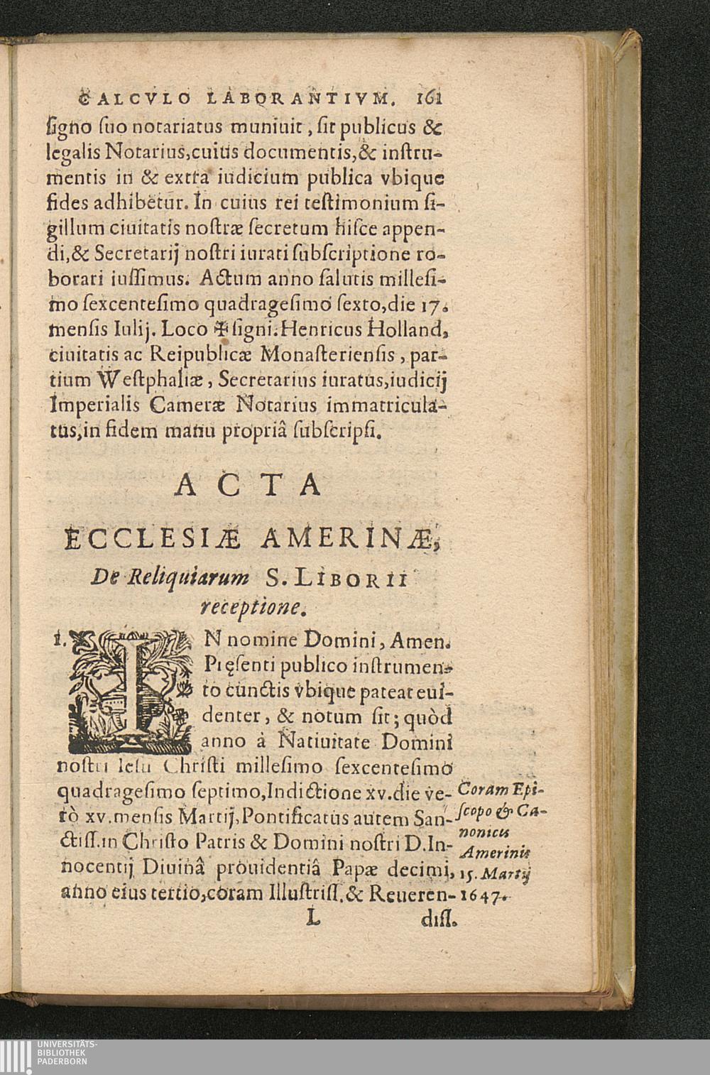 Acta Ecclesiae Amerinae, De Reliquiarum S. Liborii receptione.