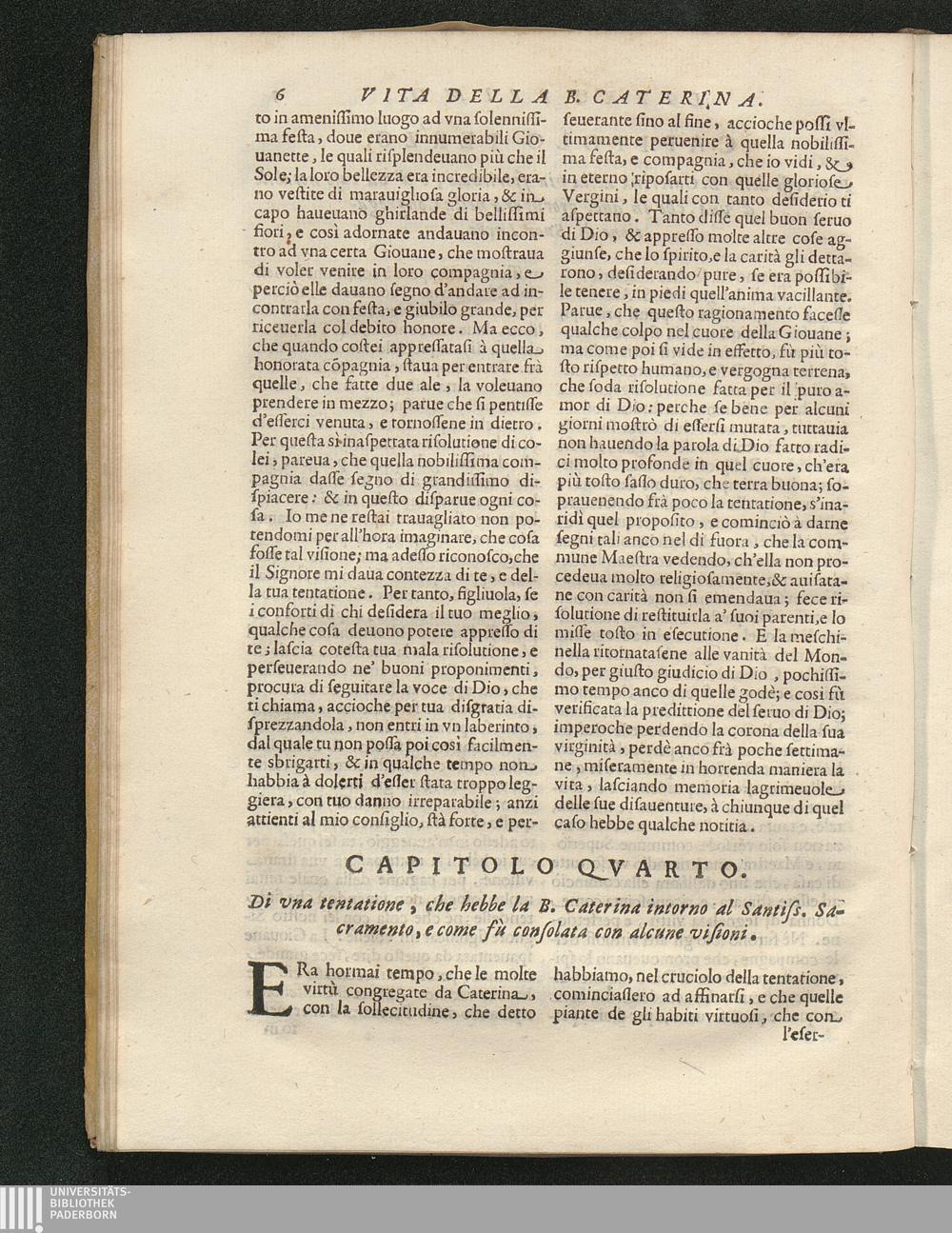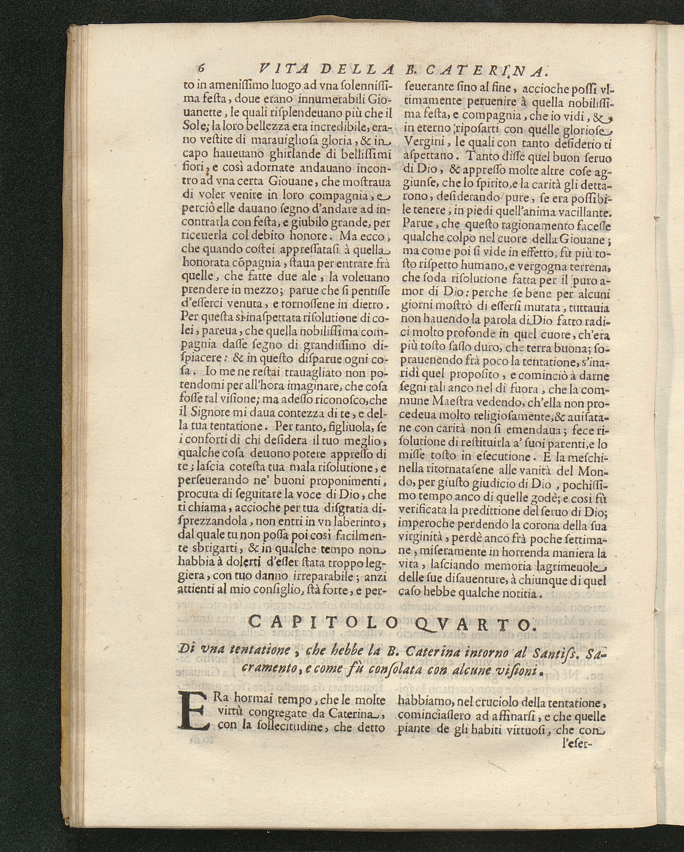 D'vna tentatione, che hebbe la B. Caterina intorno al Santissimo Sacramento, e come[...]