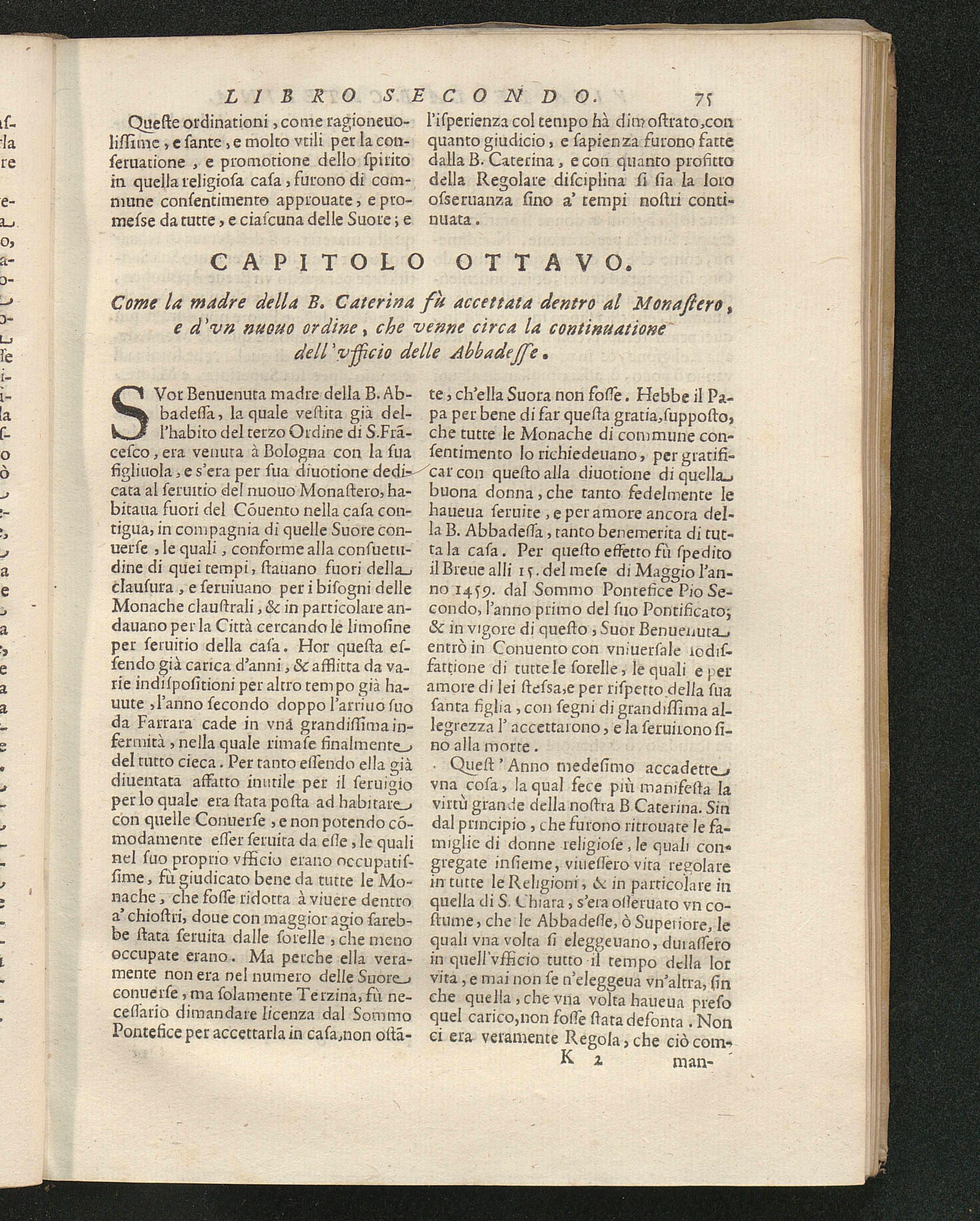 Come la madre della Beata Caterina fù accettata dentro al Monastero, e d'vn nuouo[...]