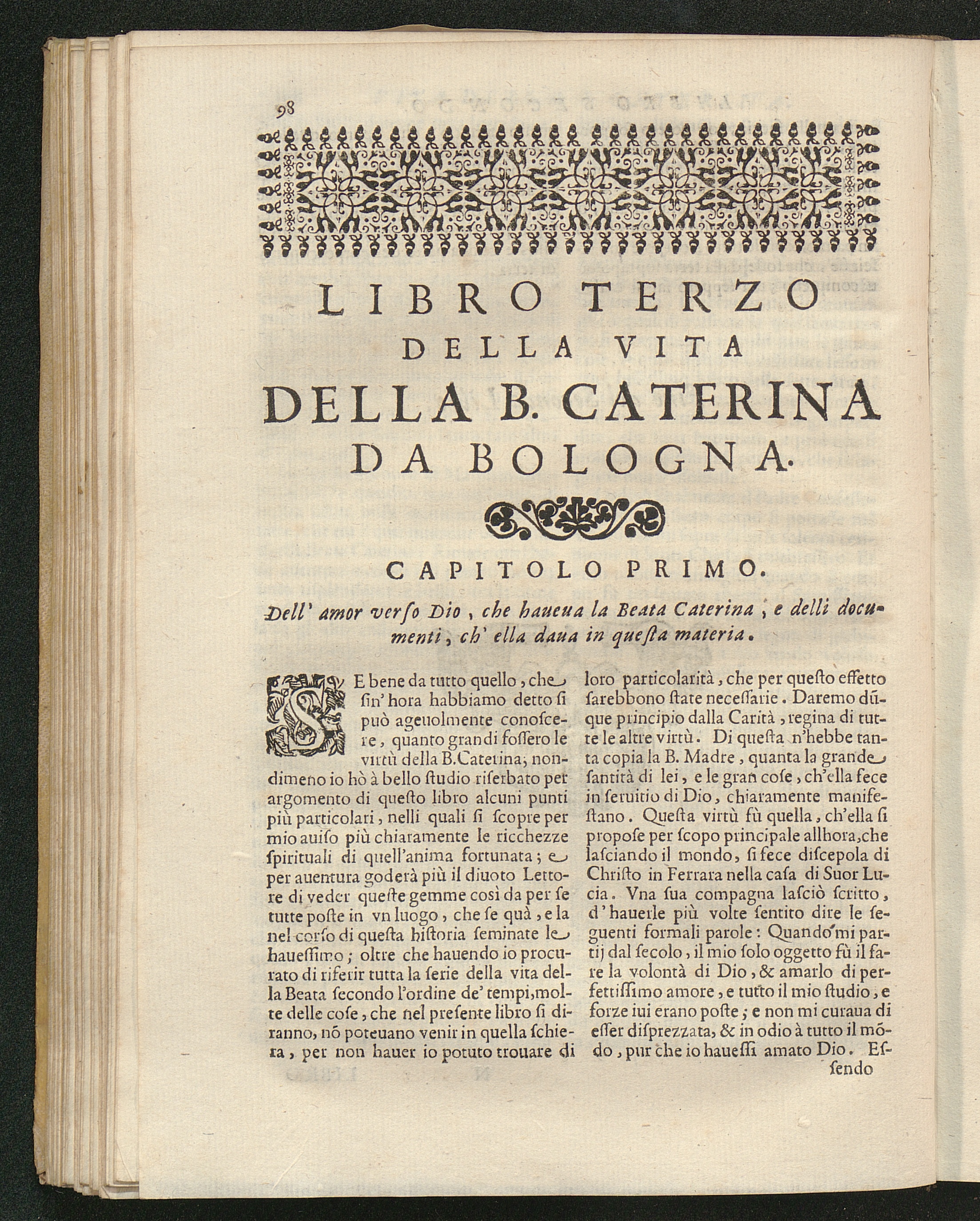 Dell'amor verso Dio, che haueua la B. Caterina, e delli documenti, ch'ella daua in[...]