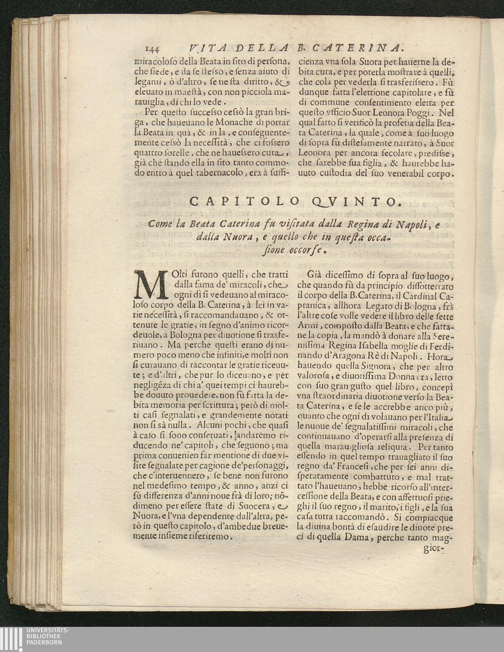 Come la B. Caterina fù visitata dalla Regina di Napoli, e dalla Nuora, e quello che[...]