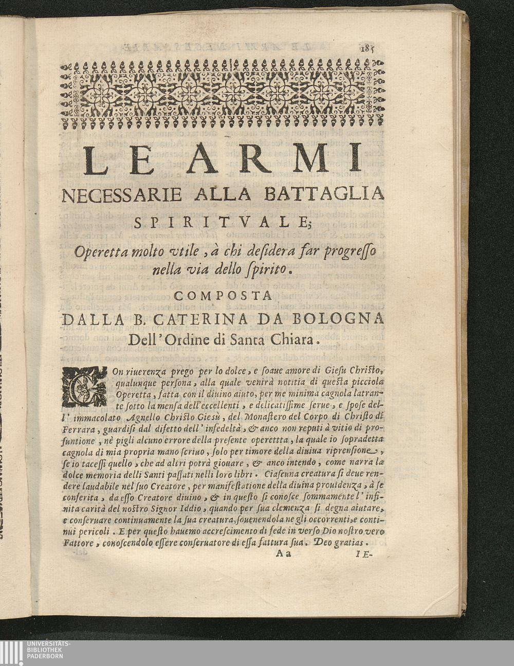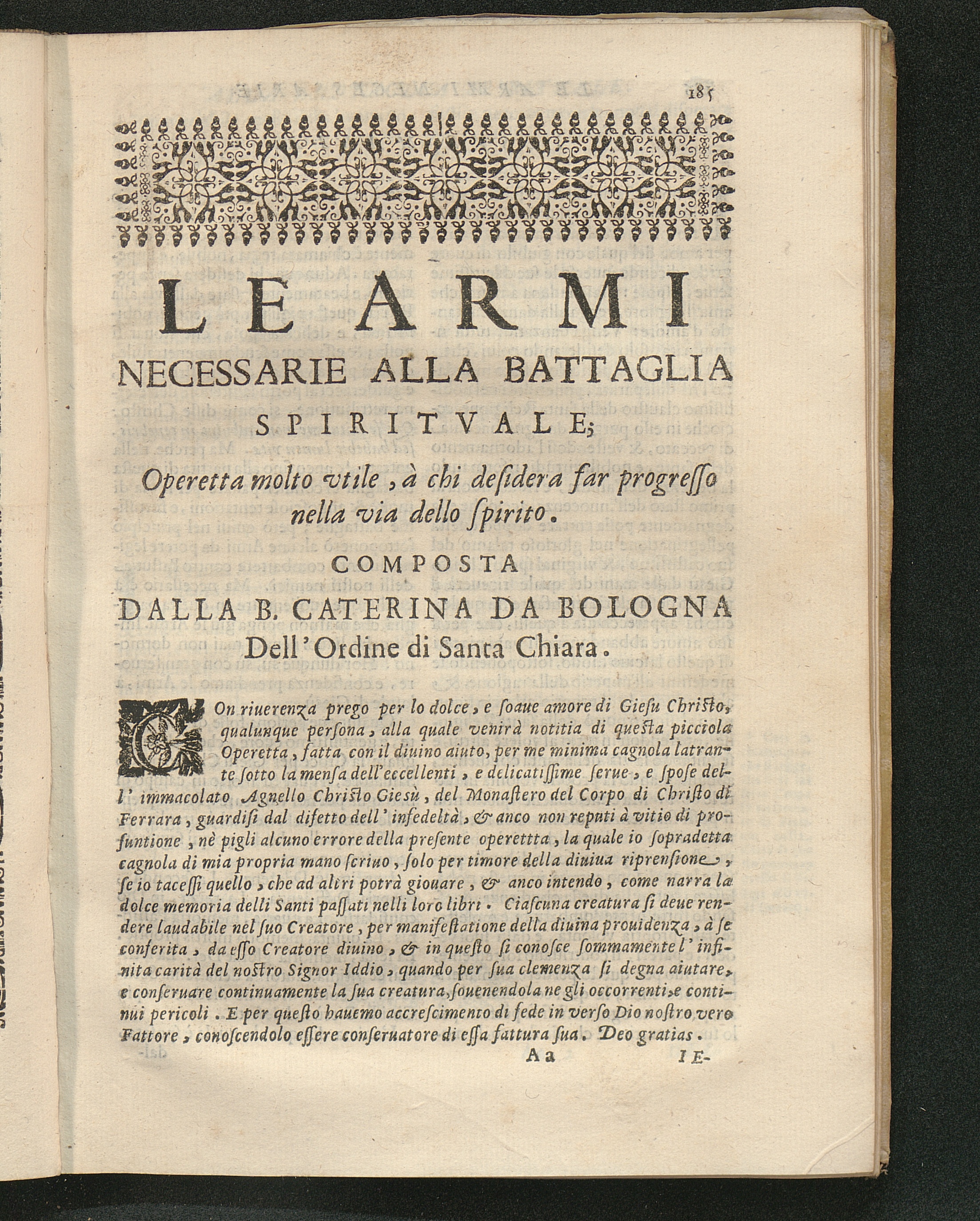 Le Armi necessarie alla Battaglia Spirituale. Operetta composta dalla B. Caterina[...]