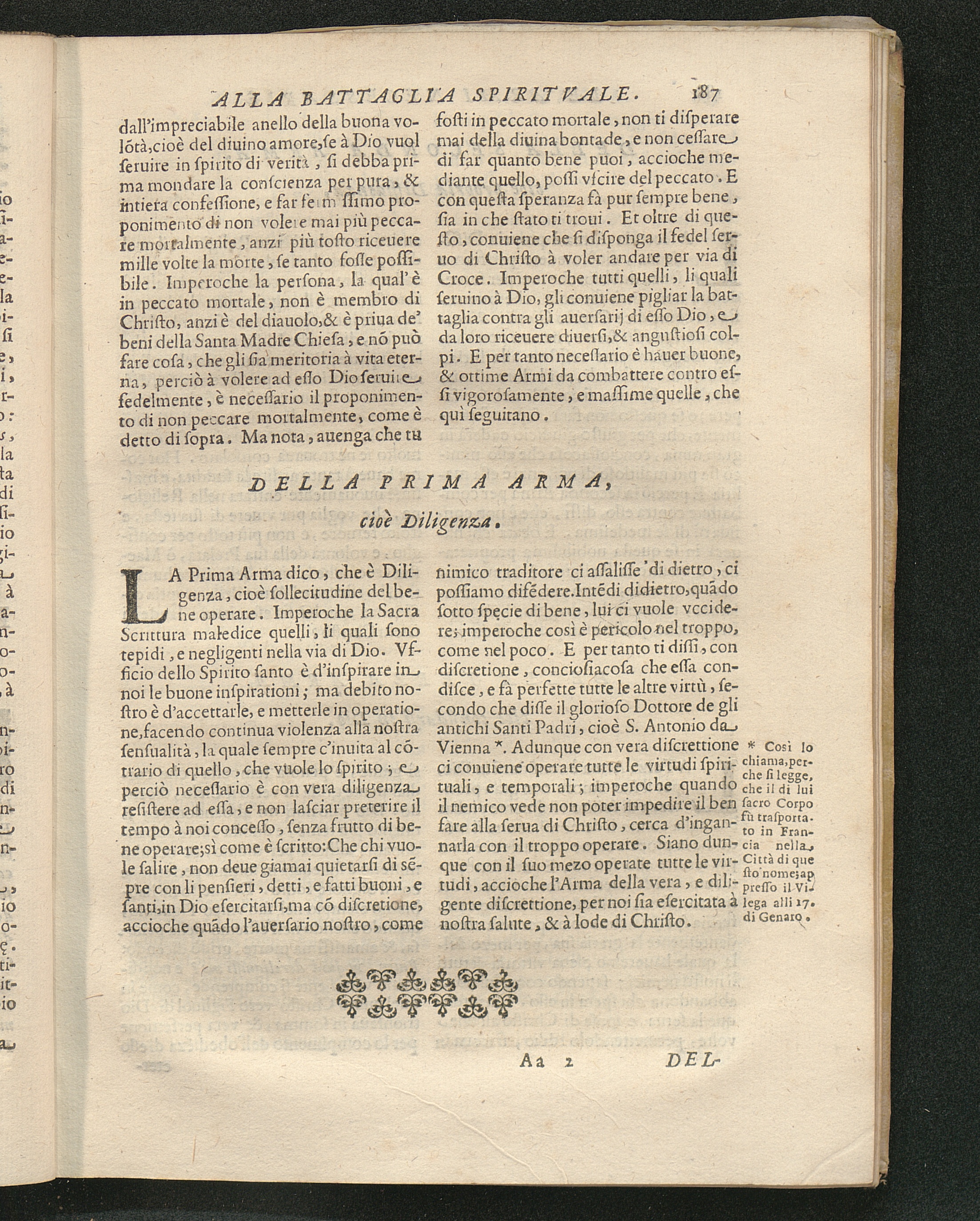Della prima arma, cioè Diligenza.