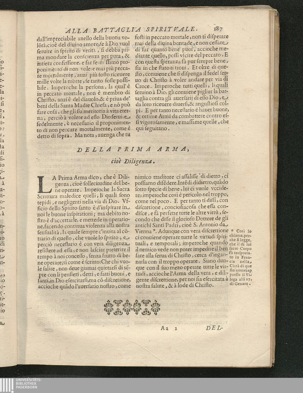 Le Armi necessarie alla Battaglia Spirituale. Operetta composta dalla B. Caterina[...]
