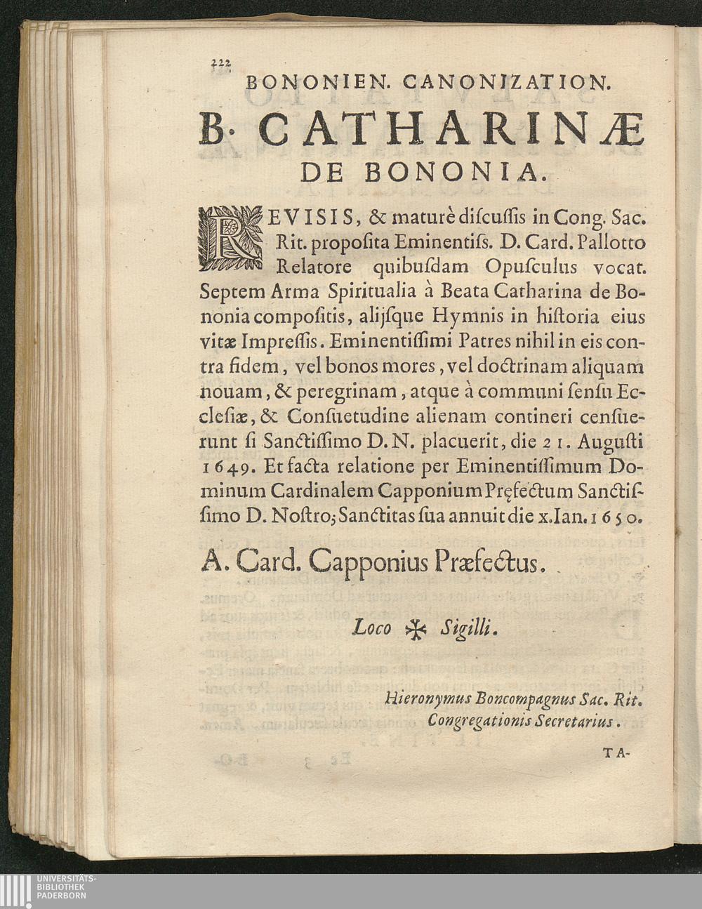 Bononien. Canonization. B. Catharinae De Bononia.
