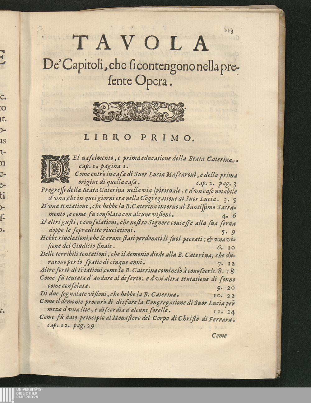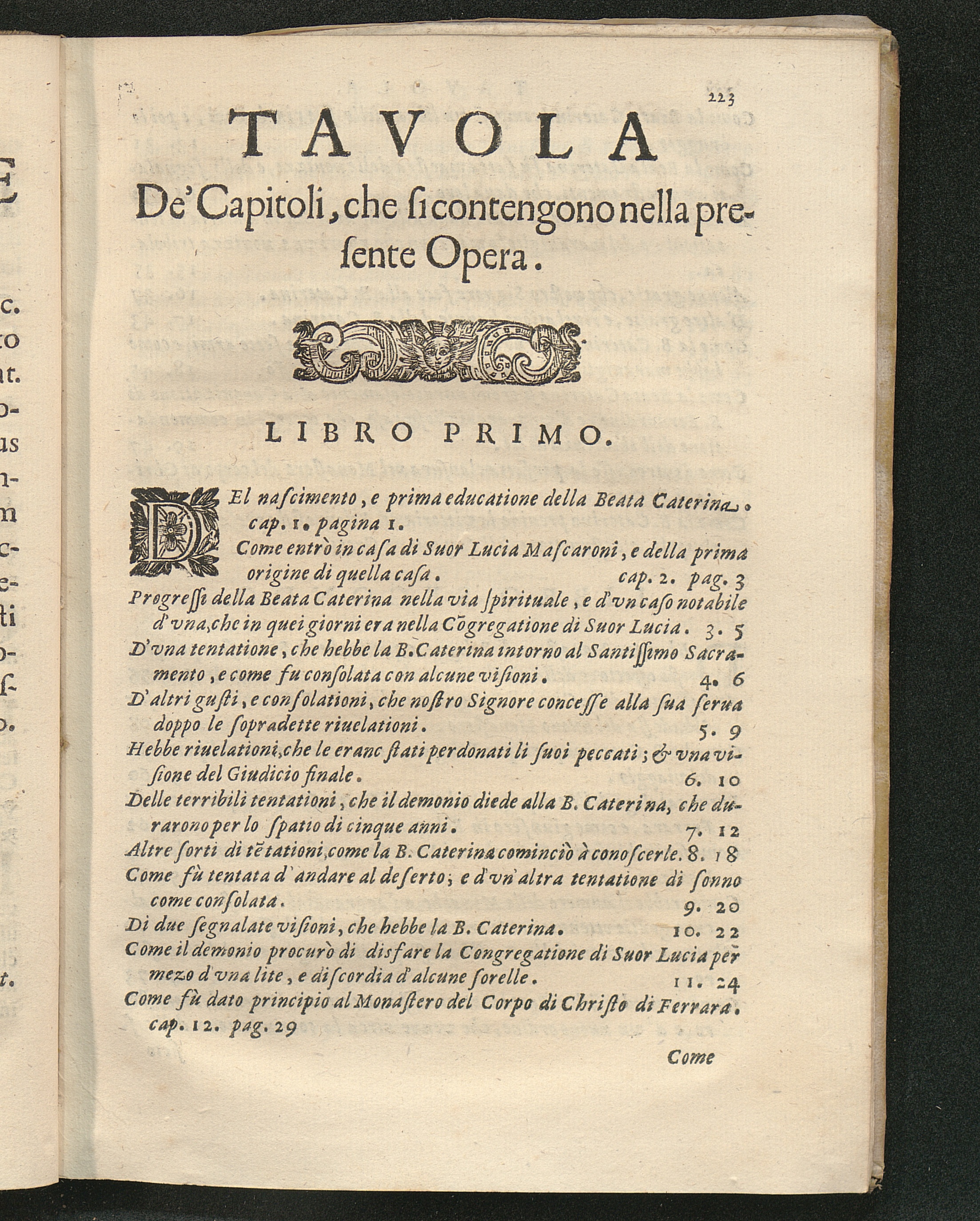 Tavola De' Capitoli, che si contengono nella presente Opera.