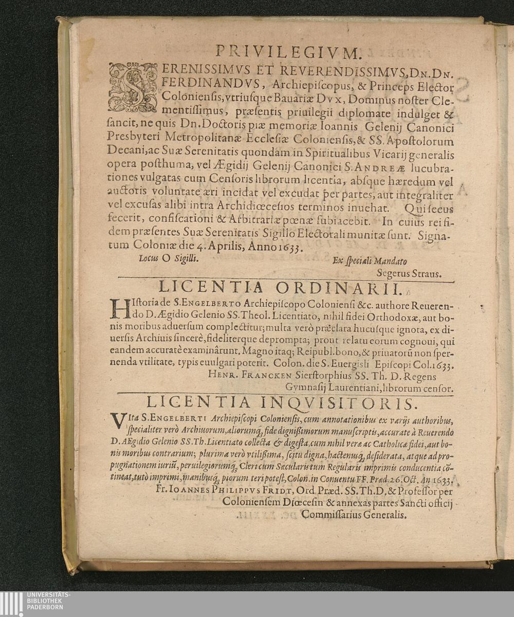 Vindex Libertatis Ecclesiasticae || Et Martyr || S. Engelbertvs || Archiepiscopvs Co-||loniensis Princeps || Elector, &c. : Vna Cvm Brevi Svae Aetatis Annalivm, Nobilivm Familiarvm, Et Monvmentorvm Agrippinensivm Ex Archivis Depromptorum editione / Per R. D. Aegidivm Gelenivm Licentiatum & S. Andreae Canonicum