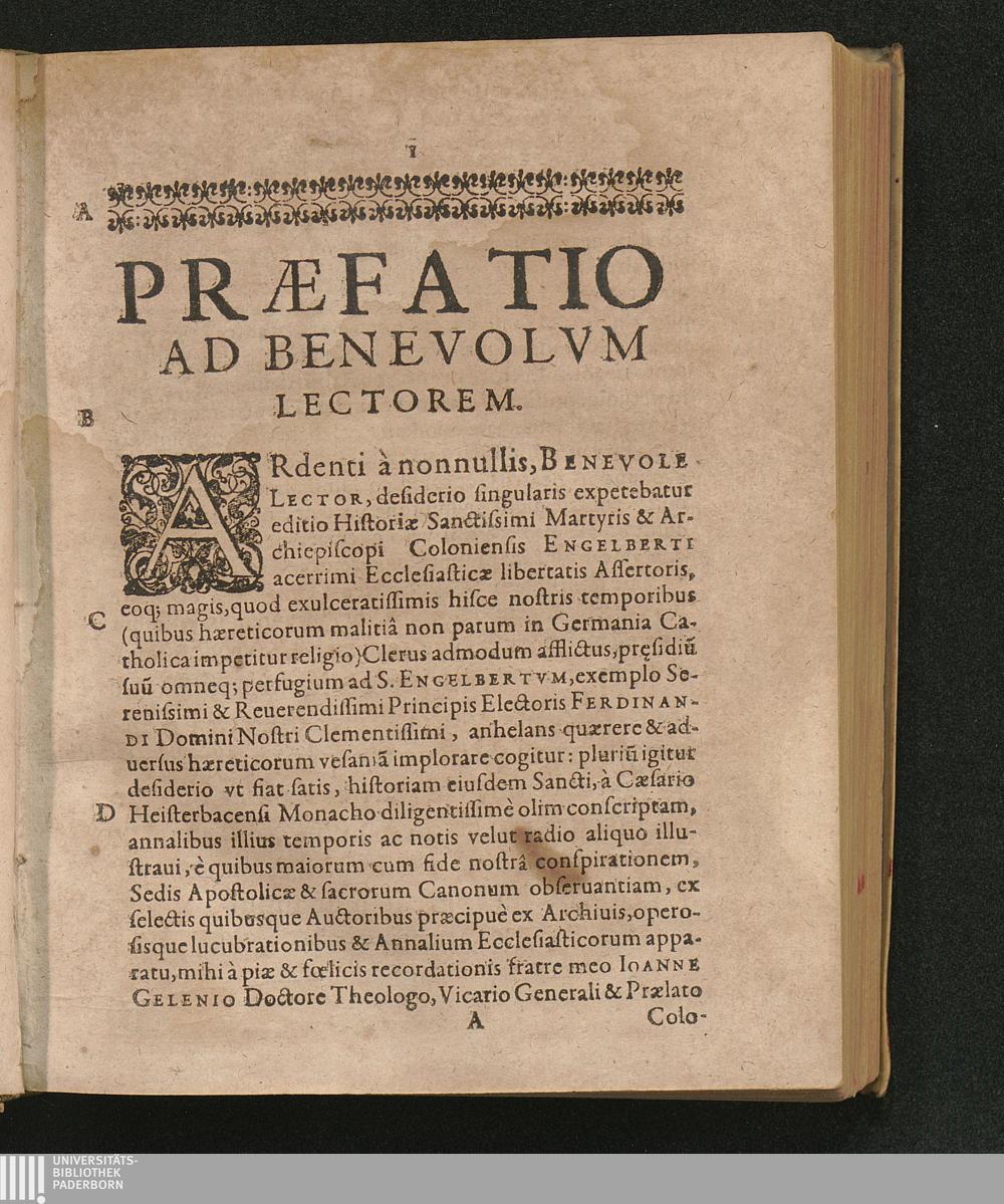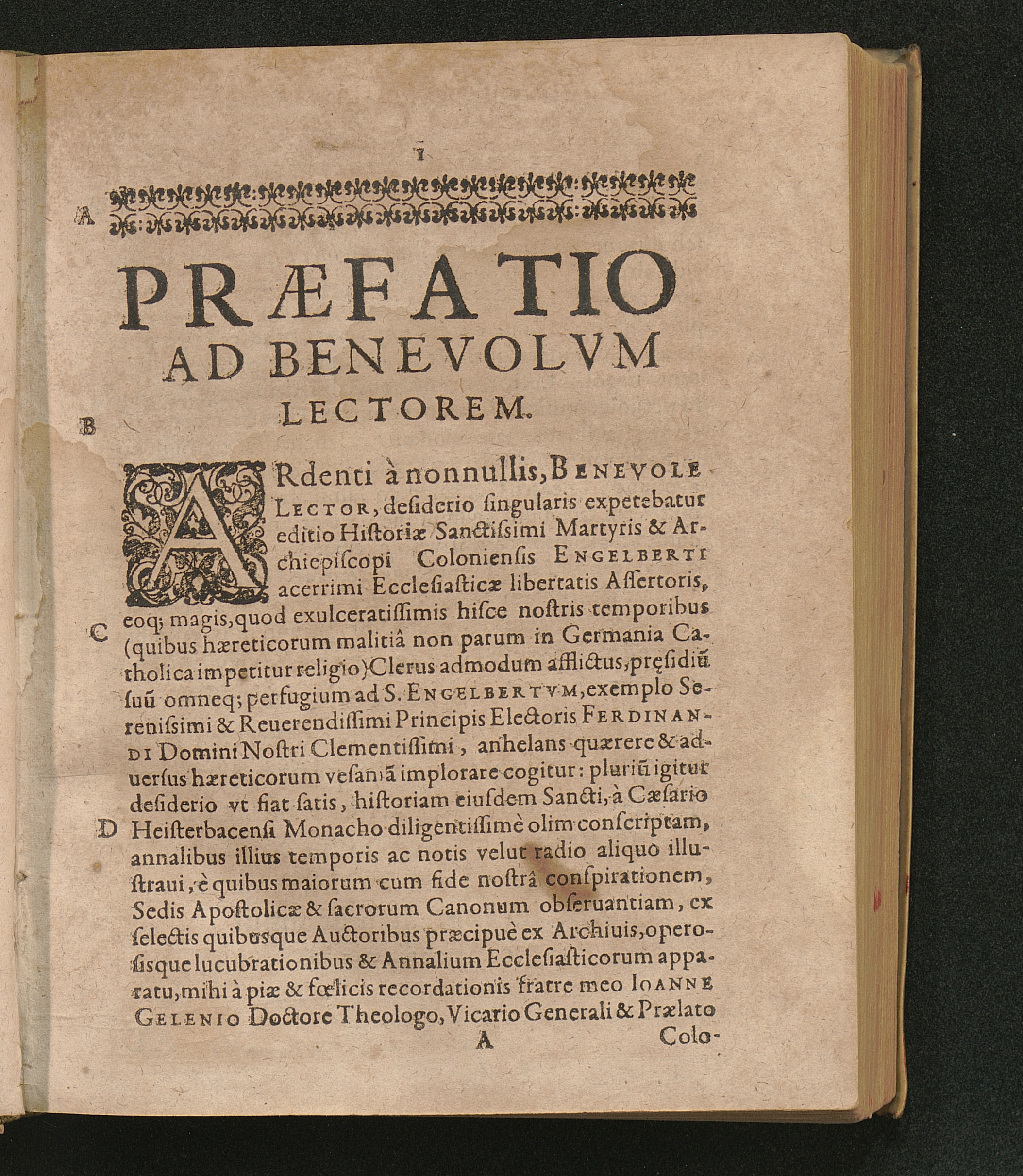 Vindex Libertatis Ecclesiasticae || Et Martyr || S. Engelbertvs || Archiepiscopvs Co-||loniensis Princeps || Elector, &c. : Vna Cvm Brevi Svae Aetatis Annalivm, Nobilivm Familiarvm, Et Monvmentorvm Agrippinensivm Ex Archivis Depromptorum editione / Per R. D. Aegidivm Gelenivm Licentiatum & S. Andreae Canonicum
