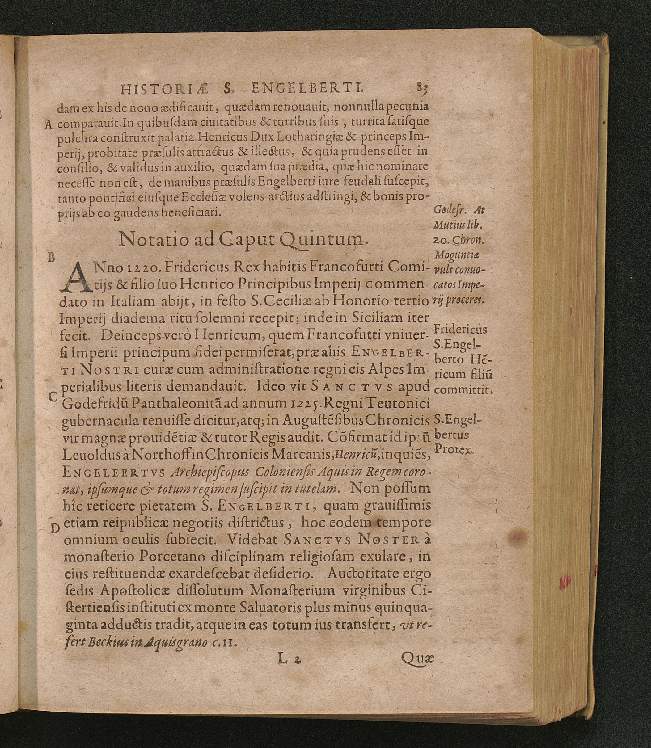 Vindex Libertatis Ecclesiasticae || Et Martyr || S. Engelbertvs || Archiepiscopvs Co-||loniensis Princeps || Elector, &c. : Vna Cvm Brevi Svae Aetatis Annalivm, Nobilivm Familiarvm, Et Monvmentorvm Agrippinensivm Ex Archivis Depromptorum editione / Per R. D. Aegidivm Gelenivm Licentiatum & S. Andreae Canonicum
