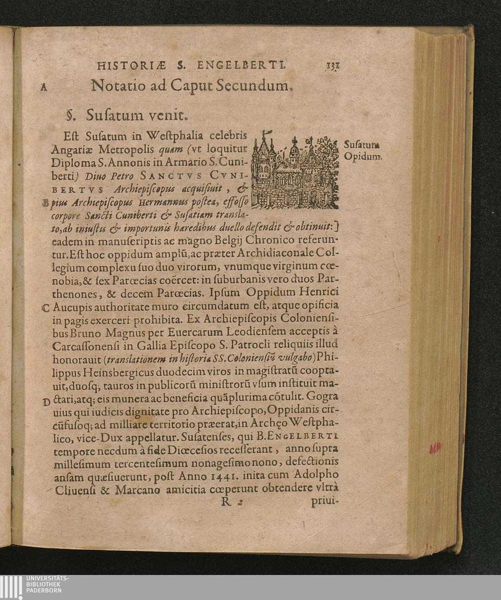Vindex Libertatis Ecclesiasticae || Et Martyr || S. Engelbertvs || Archiepiscopvs Co-||loniensis Princeps || Elector, &c. : Vna Cvm Brevi Svae Aetatis Annalivm, Nobilivm Familiarvm, Et Monvmentorvm Agrippinensivm Ex Archivis Depromptorum editione / Per R. D. Aegidivm Gelenivm Licentiatum & S. Andreae Canonicum