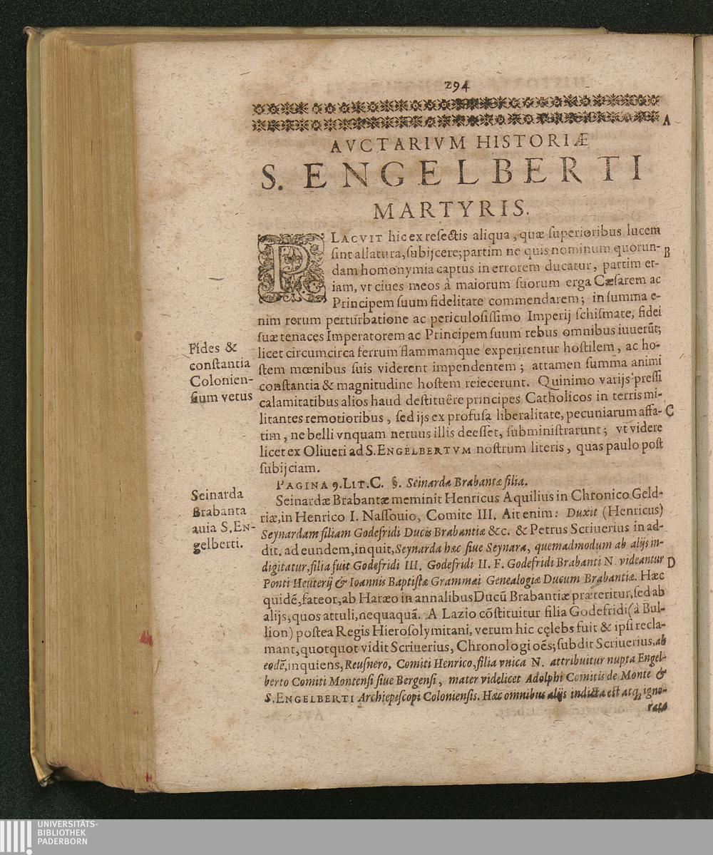 Vindex Libertatis Ecclesiasticae || Et Martyr || S. Engelbertvs || Archiepiscopvs Co-||loniensis Princeps || Elector, &c. : Vna Cvm Brevi Svae Aetatis Annalivm, Nobilivm Familiarvm, Et Monvmentorvm Agrippinensivm Ex Archivis Depromptorum editione / Per R. D. Aegidivm Gelenivm Licentiatum & S. Andreae Canonicum