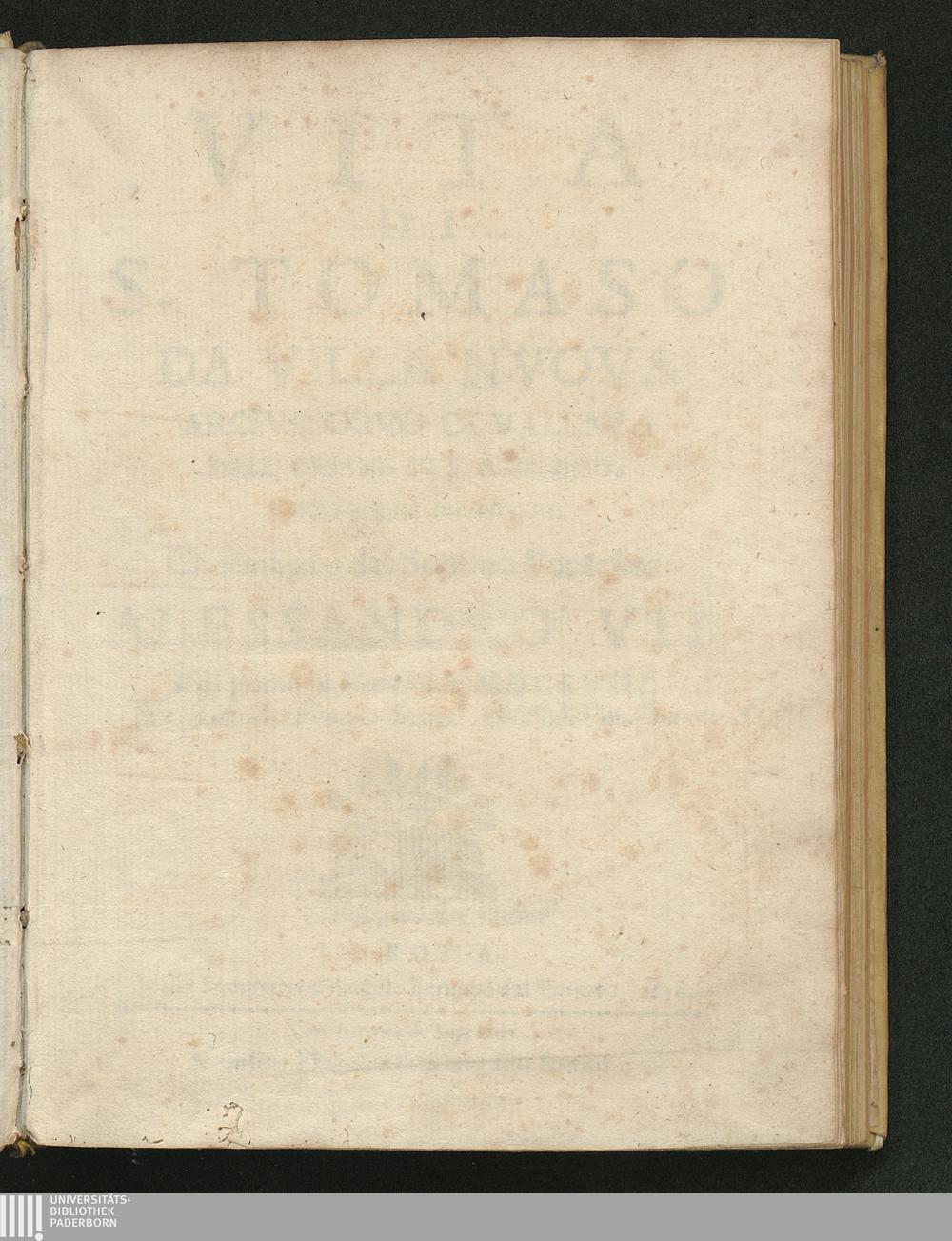Vita Di S. Tomaso Da Villa Nvova Arcivescovo Di Valenza Dell'Ordine Di S. Agostino, Detto Padre De' Poveri : Canonizato dal Sommo Pontefice Alessandro VII. Il di primo di Nouembre MDCLVIII. / [Michele Salone]