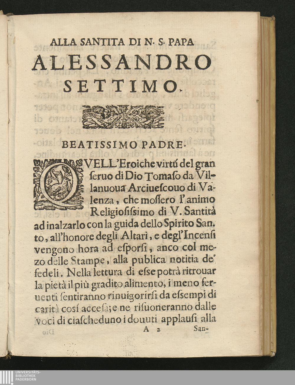 Alla Santita Di N. S. Papa Alessandro Settimo.