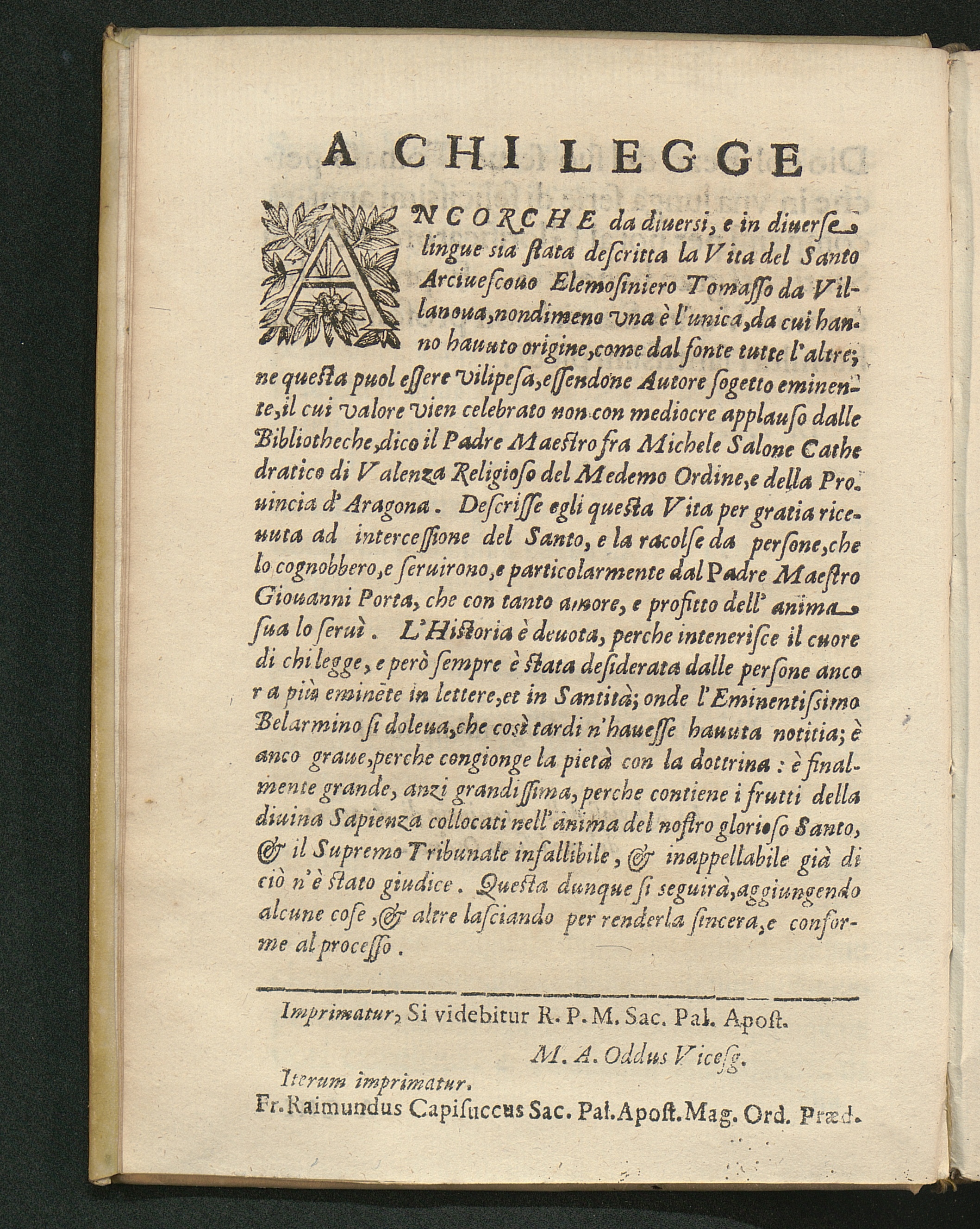Vita Di S. Tomaso Da Villa Nvova Arcivescovo Di Valenza Dell'Ordine Di S. Agostino, Detto Padre De' Poveri : Canonizato dal Sommo Pontefice Alessandro VII. Il di primo di Nouembre MDCLVIII. / [Michele Salone]