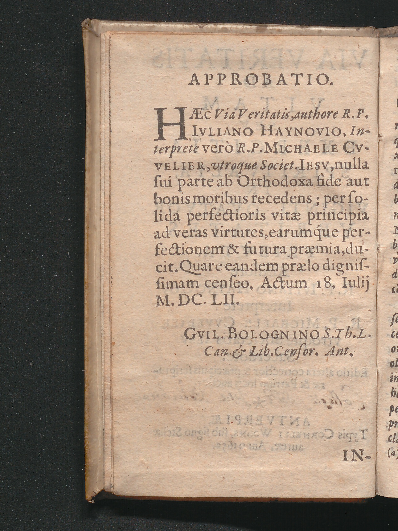 Via Veritatis Ad Vitam Sev Exercitia Spiritvalia : In Viginti Qvatvor Veritates Tribvta / Authore R. P. Ivliano Haynovio, Interprete R. P. Michaele Cvvelier vtroque Societatis Iesv Sacerdote