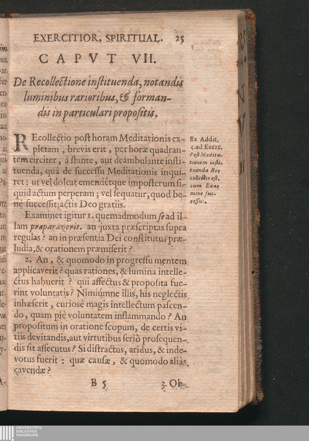 Recollectio Spiritvalis : Iuxtà normam sacrorum Exercitiorum S. Ignatii de Loiola Formata, Ad vitam puram, piam, perfectam, Sacerdote dignam, accommodata / Excerpta ex Duce Viæ R. P. Iacobi Masenii è Societate Jesu, & Aucta. Ad Mandatum Illustrissimi ac Referendissimi Domini, D. Suffraganei et Coadministratoris in Spiritualibus Apostolici Coloniensis