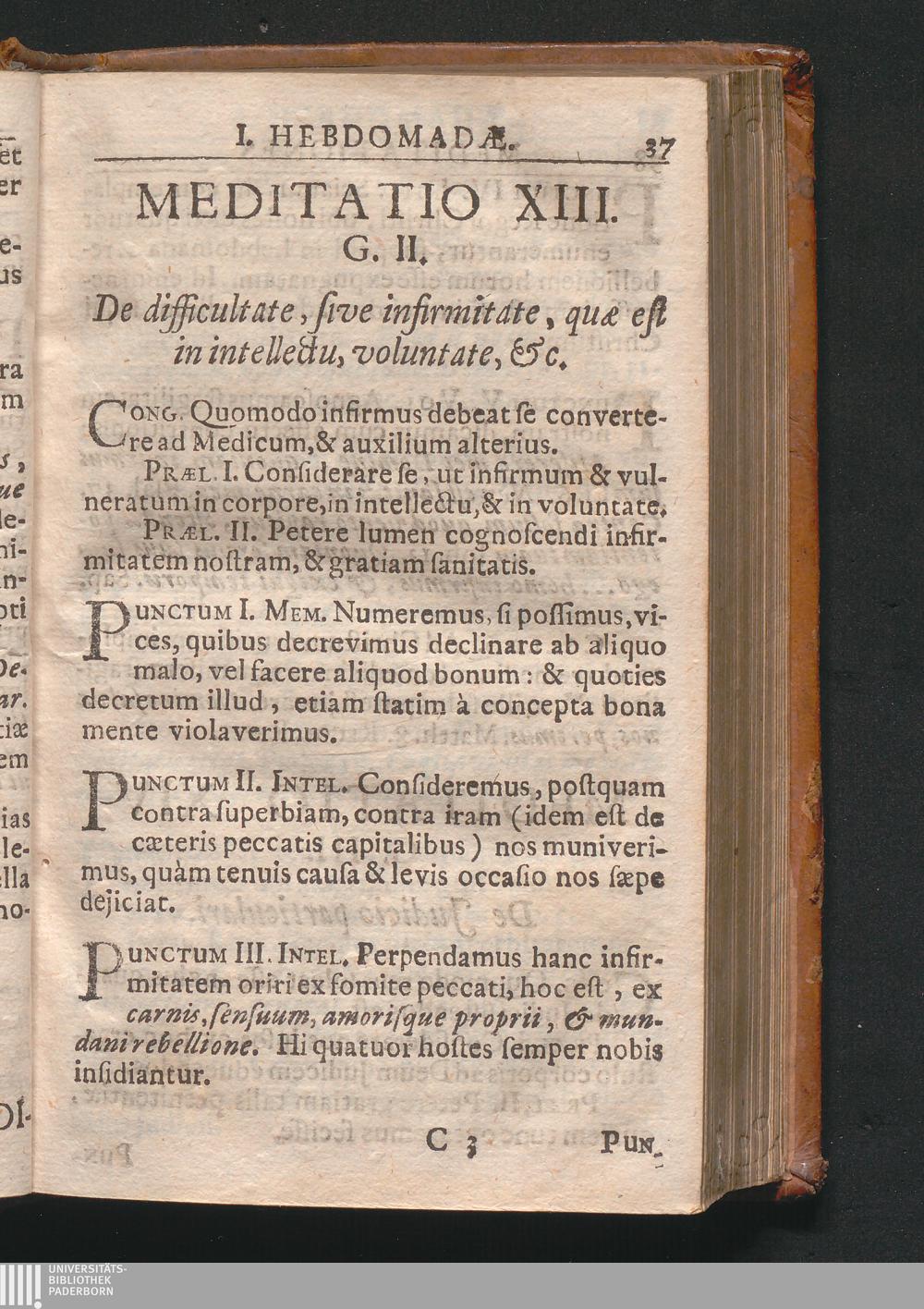 Med. 13. Gen. 2. De difficultate, sive infirmitate, quæ est in intellectu, voluntate.[...]