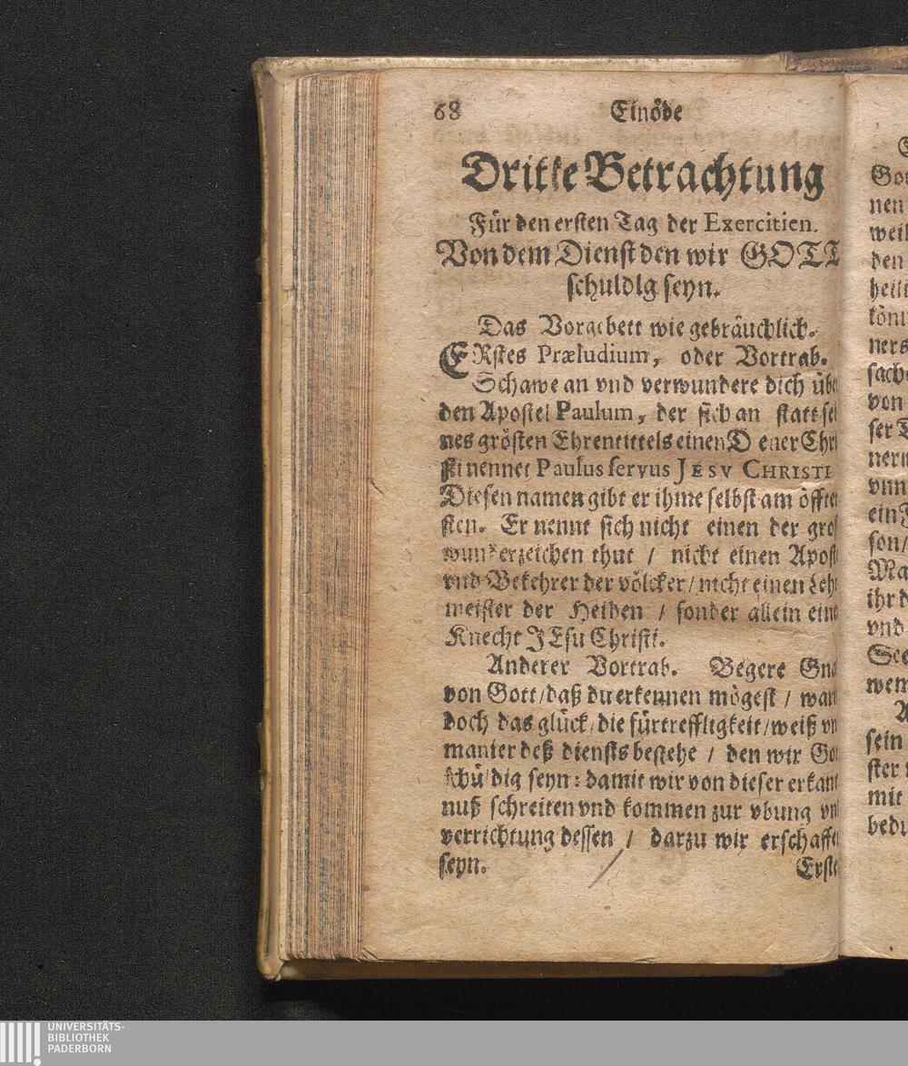 Einöde Philagiæ, Weiß vnnd Manier/ die Geistliche Exercitia einmal im Jahr/ acht oder zehn Tag lang nützlich zu verrichten : Neben den Betrachtungen/ Bedencken Examen, vnd Geistlichem lesen/ so alsdan zu gebrauchen / Von R. P. Paulo de Barry Frantzösisch beschrieben/ Vnd an jetzo verteutscht Von R. P. Martino Sibenio, beyden der Societät Jesu Priestern
