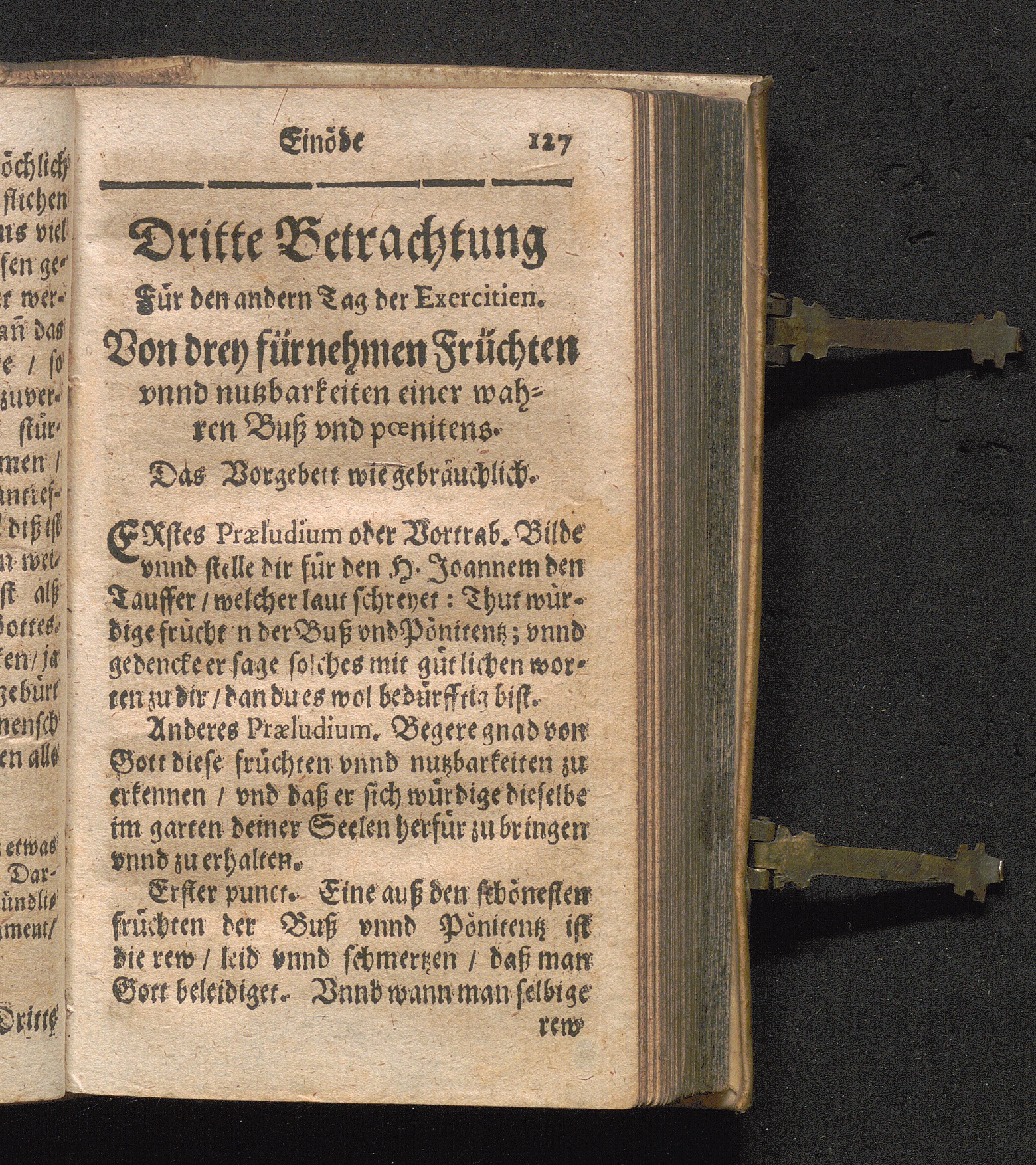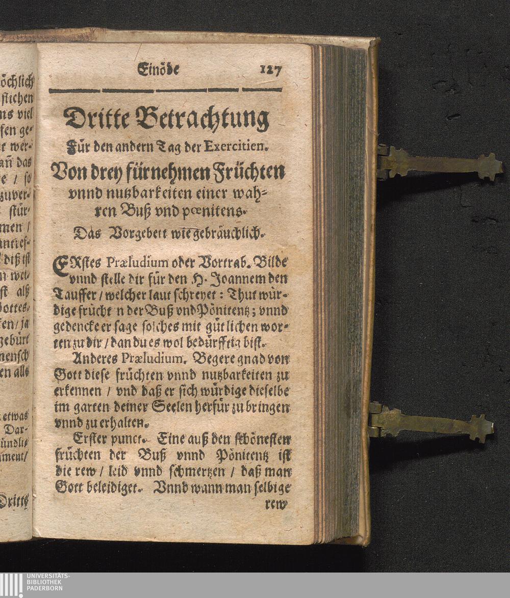 Einöde Philagiæ, Weiß vnnd Manier/ die Geistliche Exercitia einmal im Jahr/ acht oder zehn Tag lang nützlich zu verrichten : Neben den Betrachtungen/ Bedencken Examen, vnd Geistlichem lesen/ so alsdan zu gebrauchen / Von R. P. Paulo de Barry Frantzösisch beschrieben/ Vnd an jetzo verteutscht Von R. P. Martino Sibenio, beyden der Societät Jesu Priestern