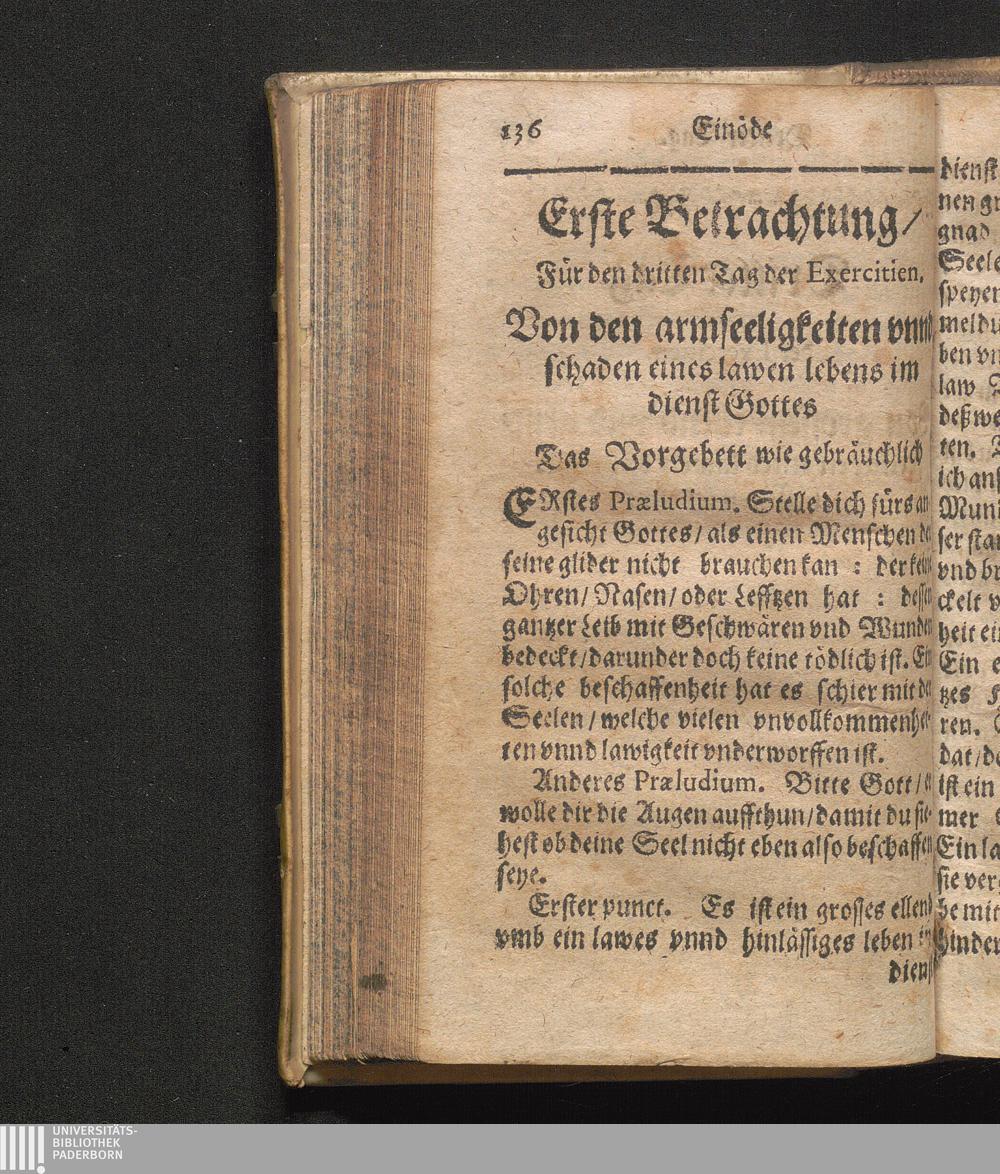 Einöde Philagiæ, Weiß vnnd Manier/ die Geistliche Exercitia einmal im Jahr/ acht oder zehn Tag lang nützlich zu verrichten : Neben den Betrachtungen/ Bedencken Examen, vnd Geistlichem lesen/ so alsdan zu gebrauchen / Von R. P. Paulo de Barry Frantzösisch beschrieben/ Vnd an jetzo verteutscht Von R. P. Martino Sibenio, beyden der Societät Jesu Priestern