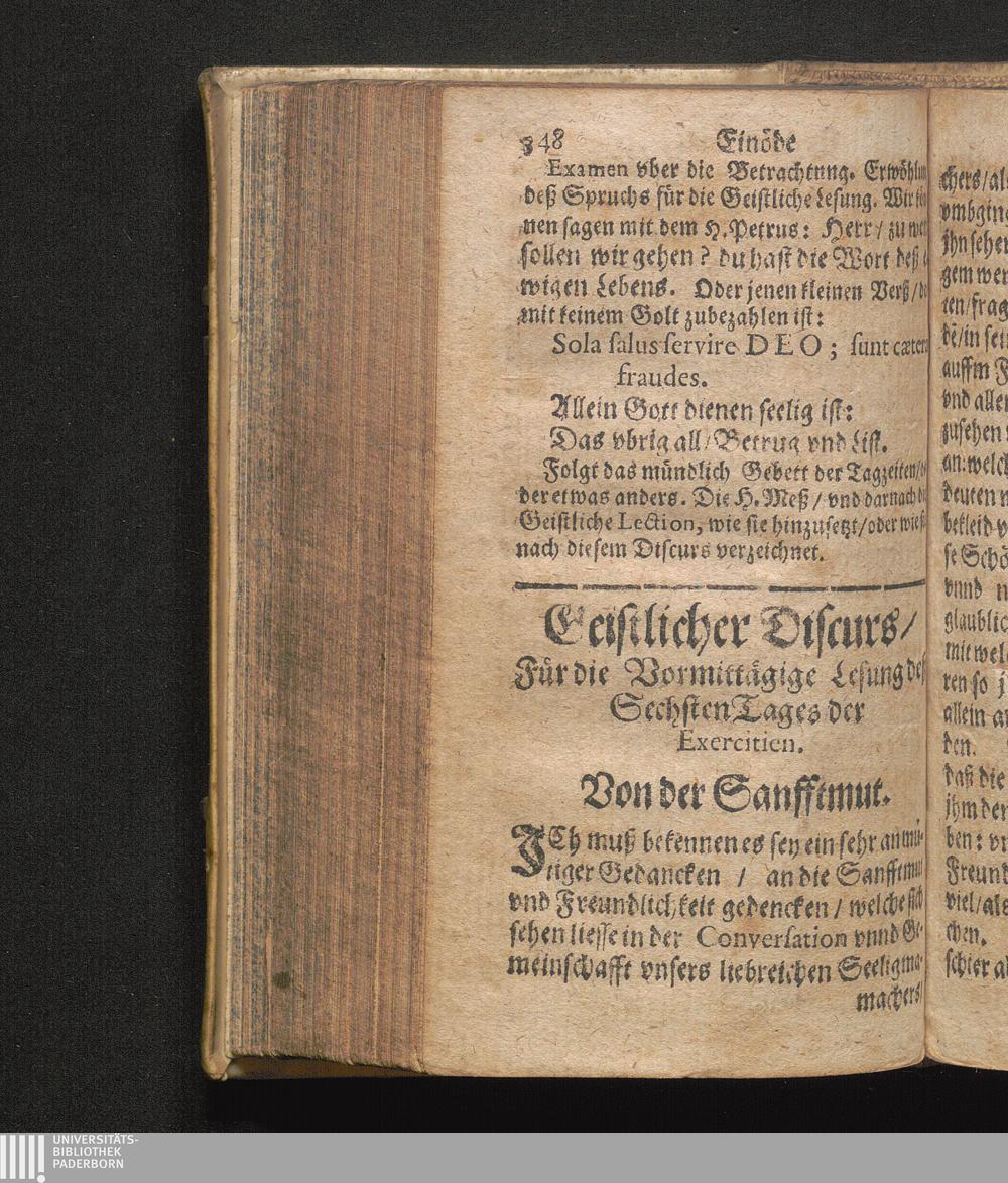 Einöde Philagiæ, Weiß vnnd Manier/ die Geistliche Exercitia einmal im Jahr/ acht oder zehn Tag lang nützlich zu verrichten : Neben den Betrachtungen/ Bedencken Examen, vnd Geistlichem lesen/ so alsdan zu gebrauchen / Von R. P. Paulo de Barry Frantzösisch beschrieben/ Vnd an jetzo verteutscht Von R. P. Martino Sibenio, beyden der Societät Jesu Priestern