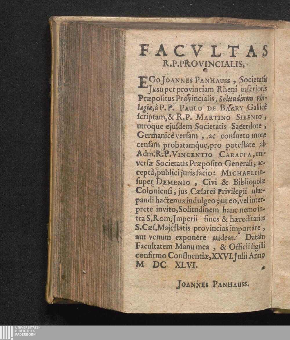 Einöde Philagiæ, Weiß vnnd Manier/ die Geistliche Exercitia einmal im Jahr/ acht oder zehn Tag lang nützlich zu verrichten : Neben den Betrachtungen/ Bedencken Examen, vnd Geistlichem lesen/ so alsdan zu gebrauchen / Von R. P. Paulo de Barry Frantzösisch beschrieben/ Vnd an jetzo verteutscht Von R. P. Martino Sibenio, beyden der Societät Jesu Priestern