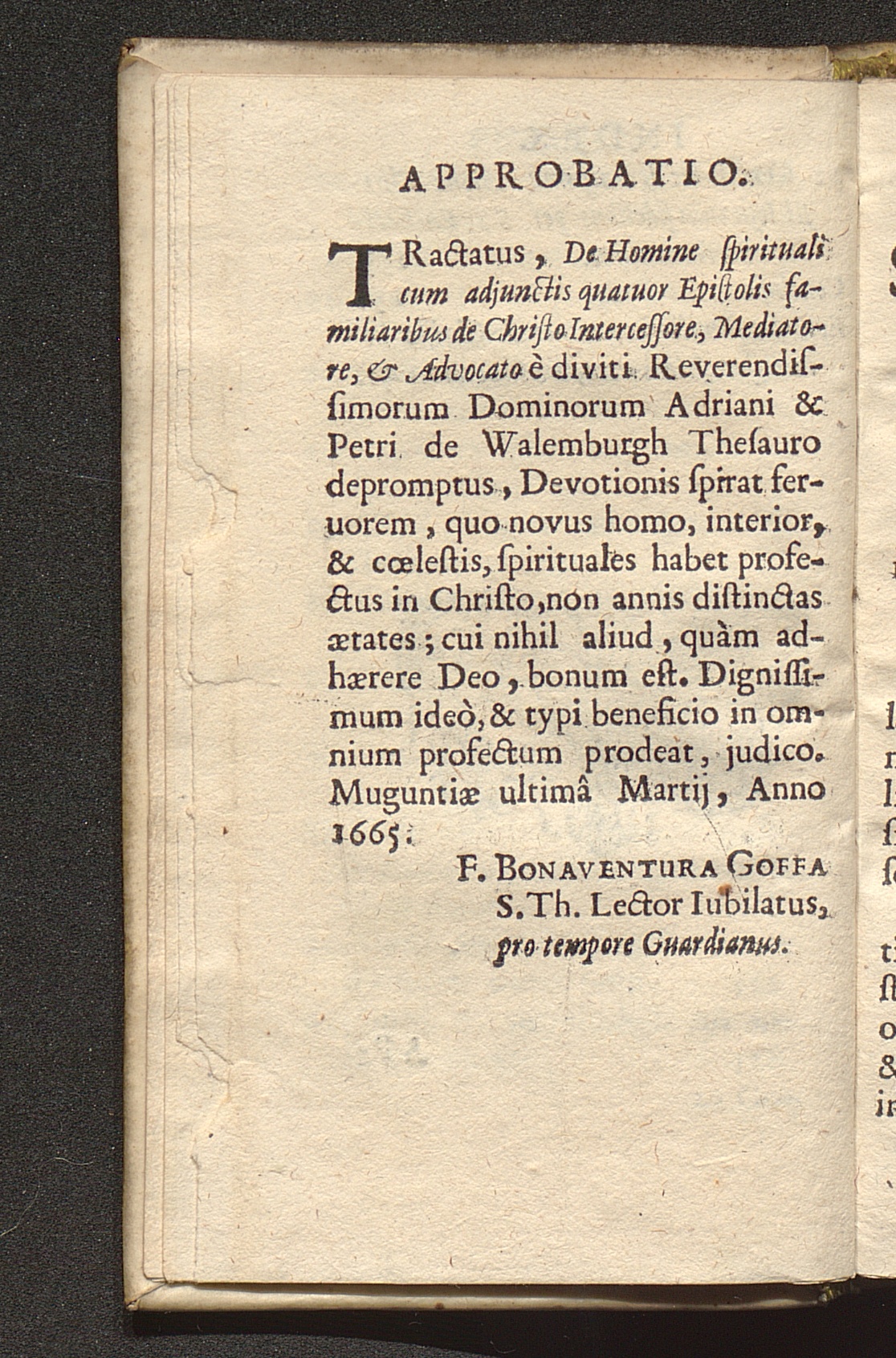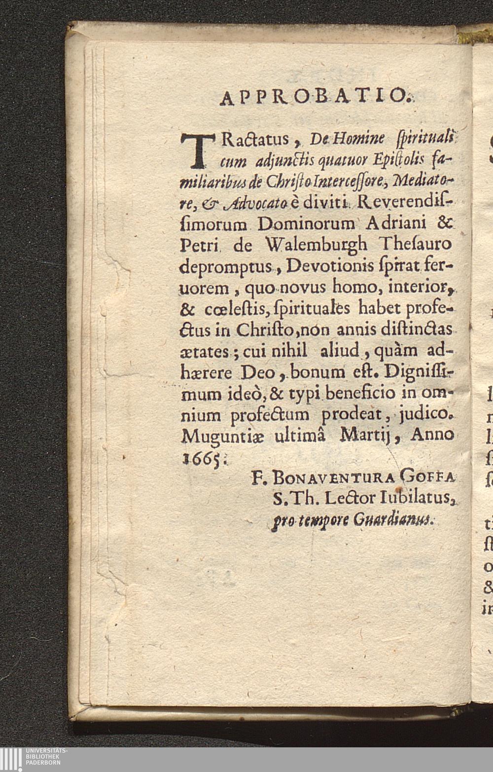 Tractatvs De Homine Spiritvali : In viginti duas Considerationes divisus / Per Adrianum & Petrum De Walenburch Batavos Illius Episcopi Adrianopolitani ... Hujus Episcopi Myssiensis ...