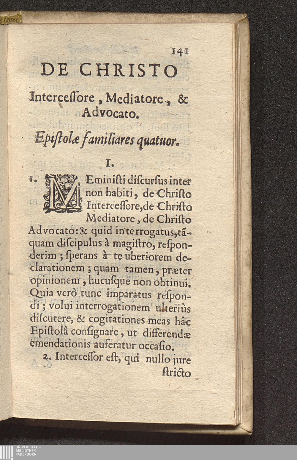 Epistolae familiares quatuor, de Christo Intercessore, Mediatore, & Advocato.