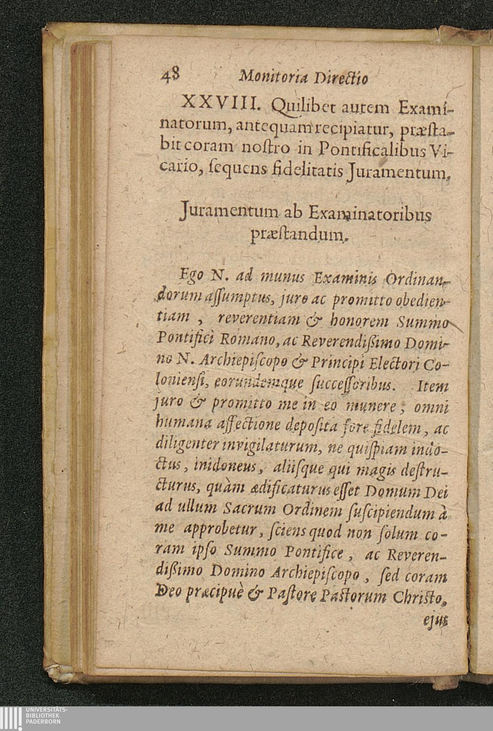 Iuramentum ab Examinatoribus praestandum, n. 28.