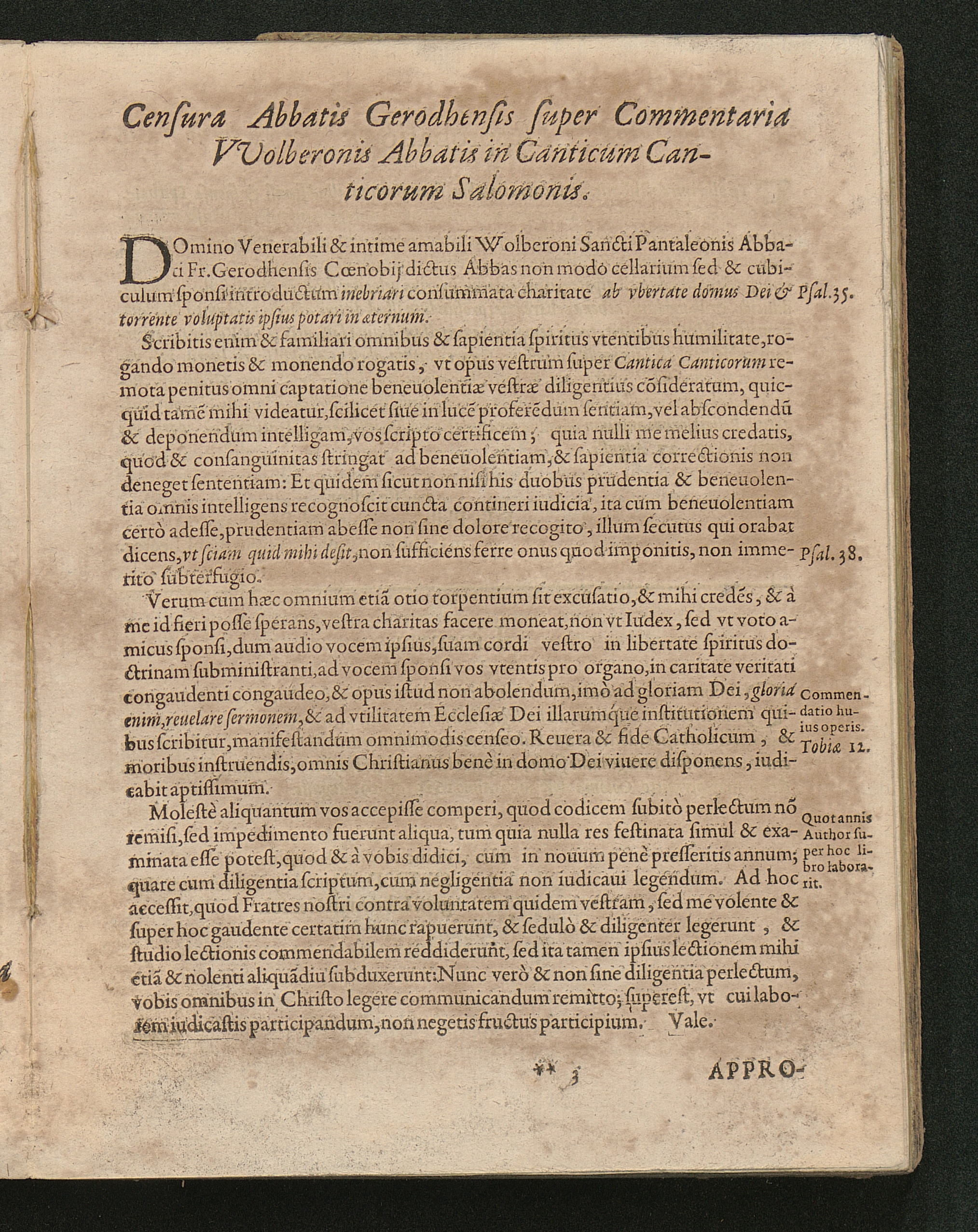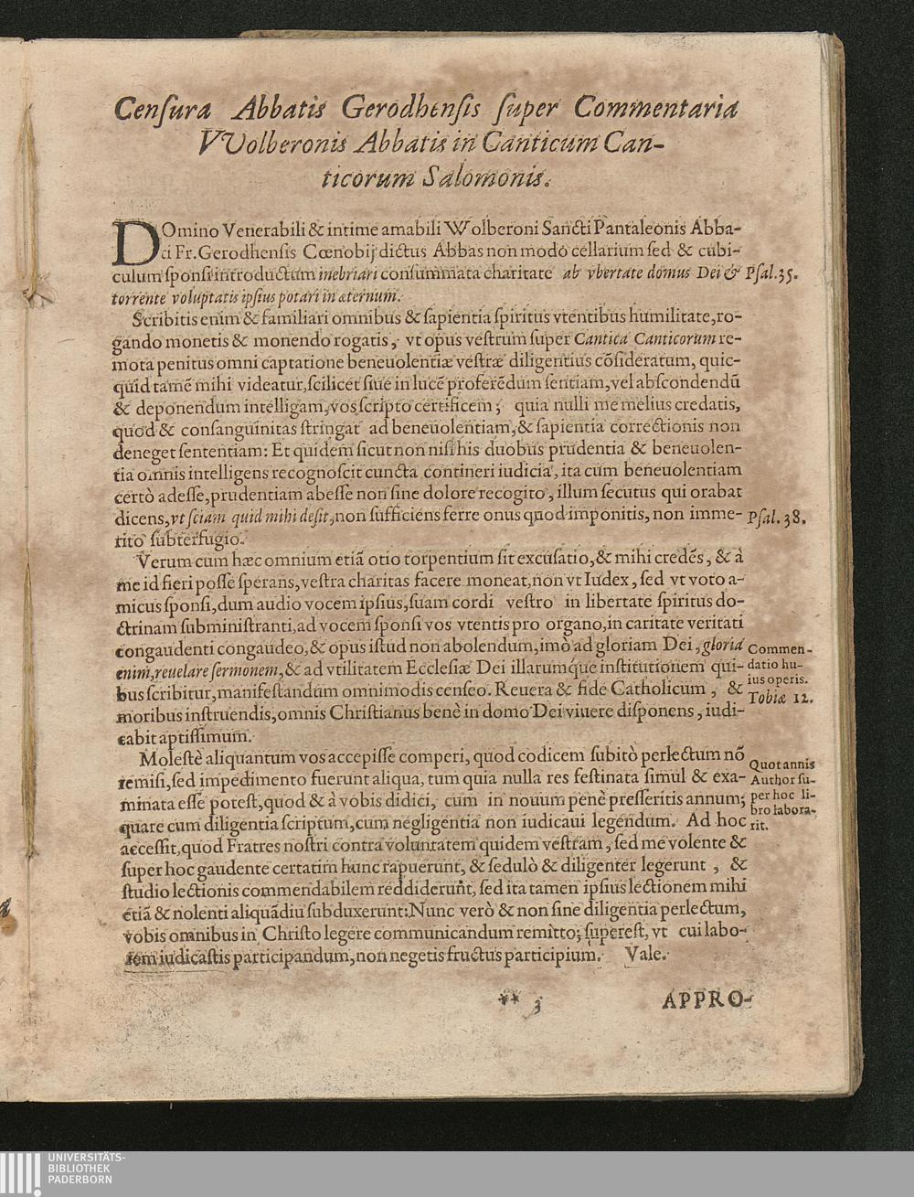 Commentaria Vetustissima & profundissima Super Canticvm Canticorvm Salomonis Qvod Hebraice Dicitvr Sirhasirim : Jn IV. Libros Distribvta / Avthore R. Ad.um D. Vvolberone Abbate S. Pantaleonis intra Coloniam Ord. S. Benedicti. Nvnc Primvm in Gratiam Concionatorvm Meliorem in ordinem digesta ... Opera R. P. Henrici Grauij SS. Theol. Baccal. eiusdem Ord. Bened.