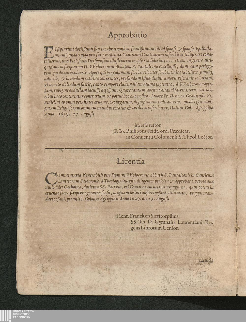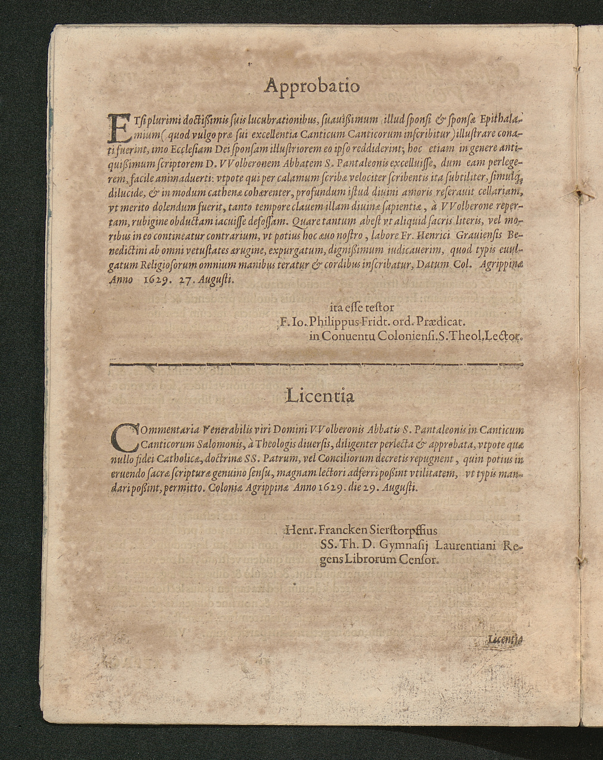 Commentaria Vetustissima & profundissima Super Canticvm Canticorvm Salomonis Qvod Hebraice Dicitvr Sirhasirim : Jn IV. Libros Distribvta / Avthore R. Ad.um D. Vvolberone Abbate S. Pantaleonis intra Coloniam Ord. S. Benedicti. Nvnc Primvm in Gratiam Concionatorvm Meliorem in ordinem digesta ... Opera R. P. Henrici Grauij SS. Theol. Baccal. eiusdem Ord. Bened.