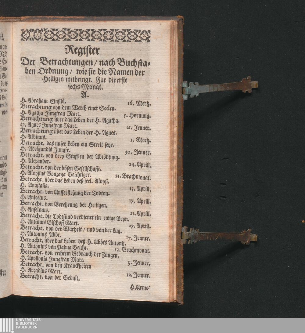 Register. Der Betrachtungen/ nach Buchstaben Ordnung/ wie sie die Namen der Heiligen[...]