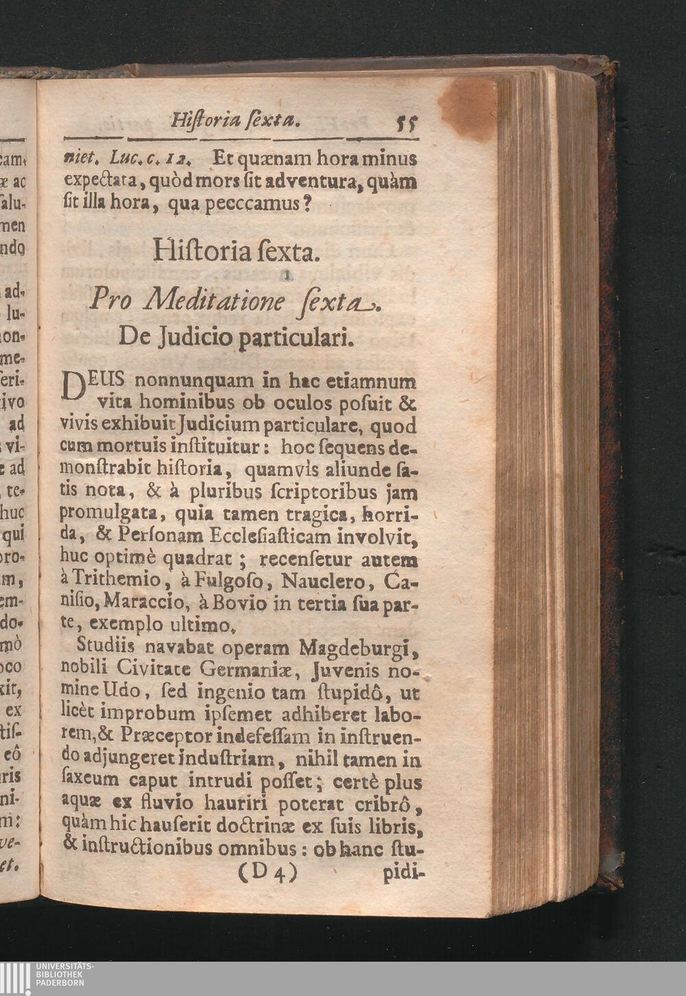 Historia sexta Pro Meditatione sexta De Judicio particulari.