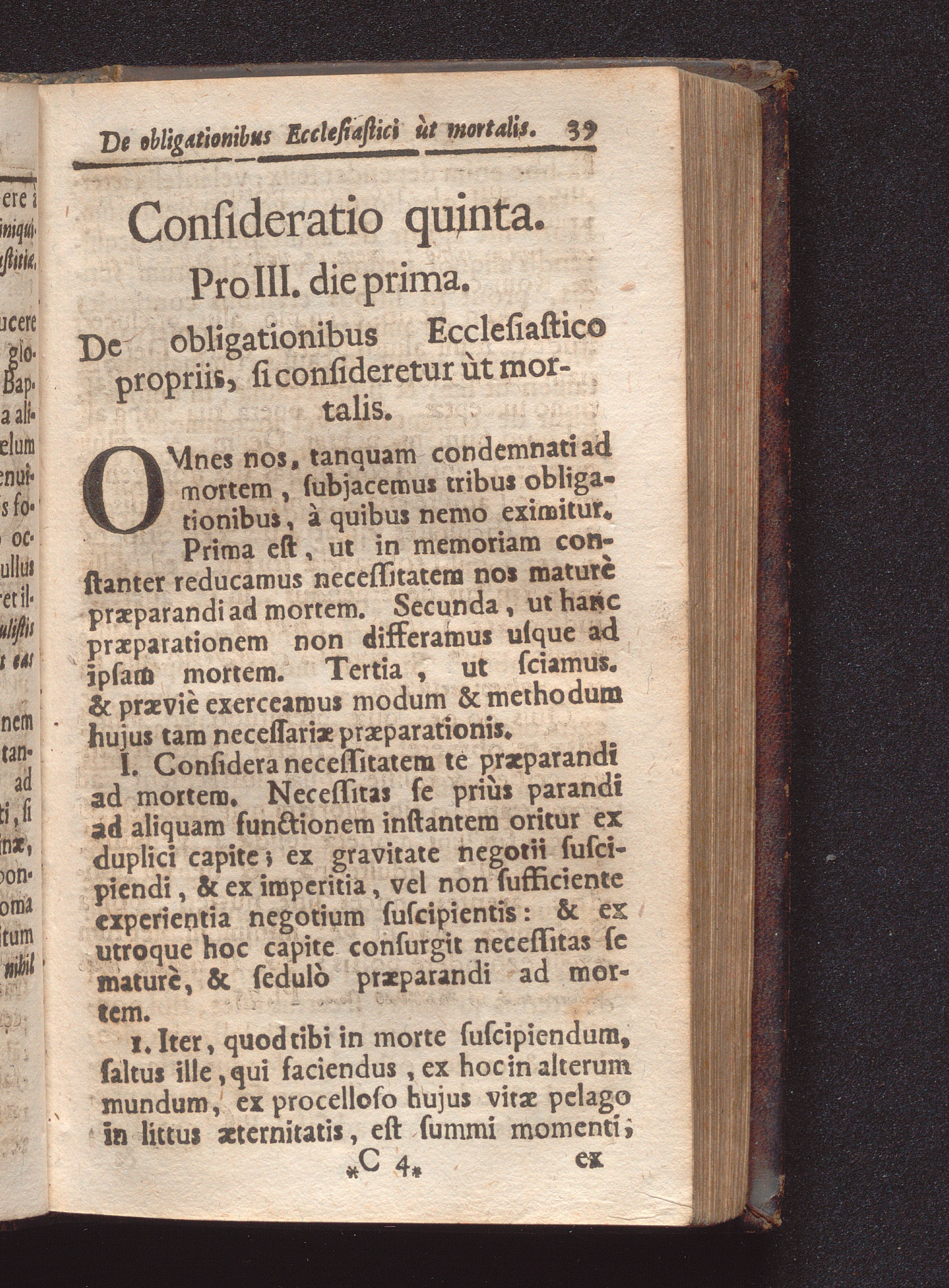 Pro die tertia, Consideratio prima De obligationibus Ecclesiastici ùt mortalis.