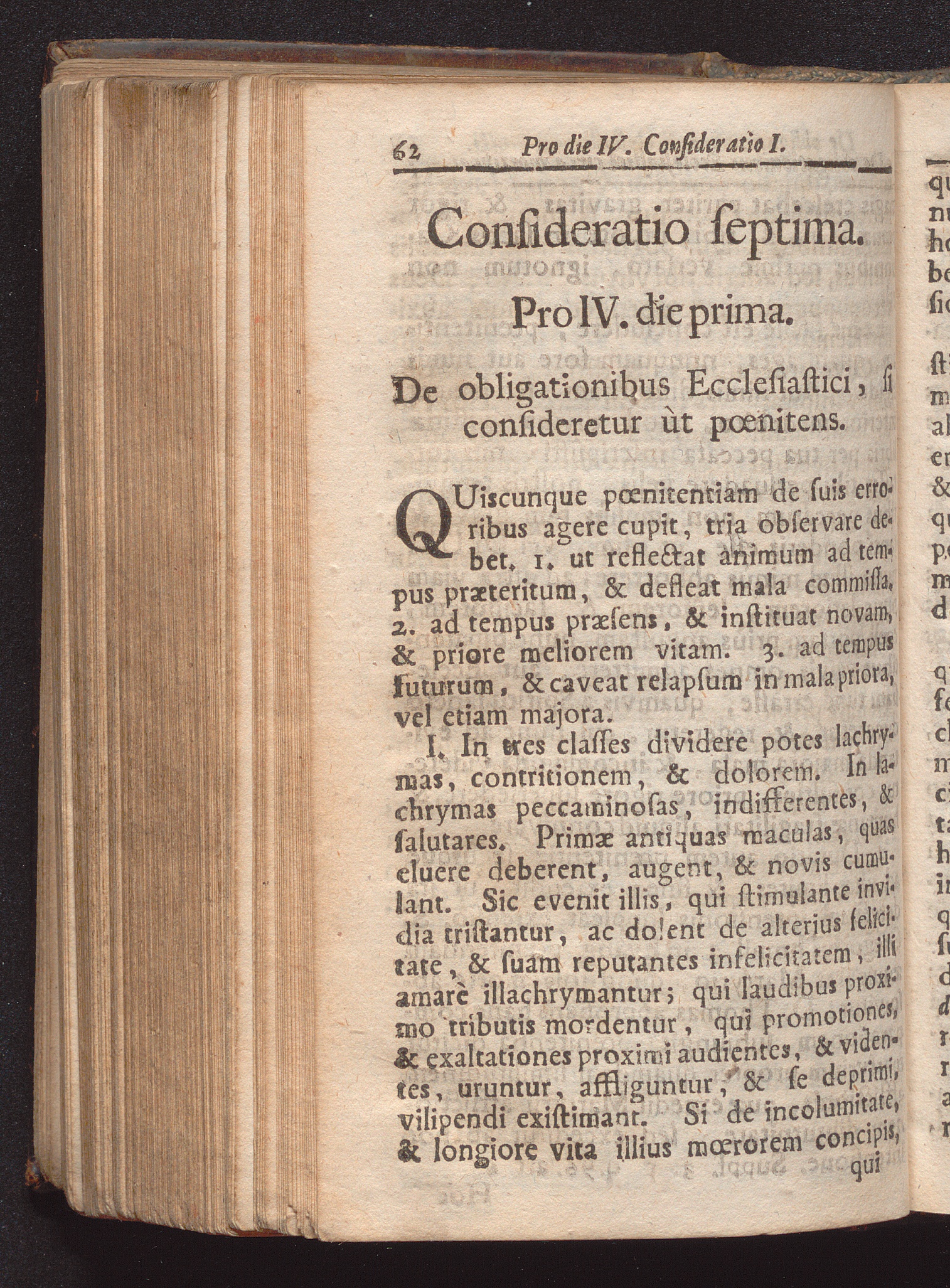 Pro die quarta, Consideratio prima De obligationibus Eccliesiastici ùt pœnitenti[...]