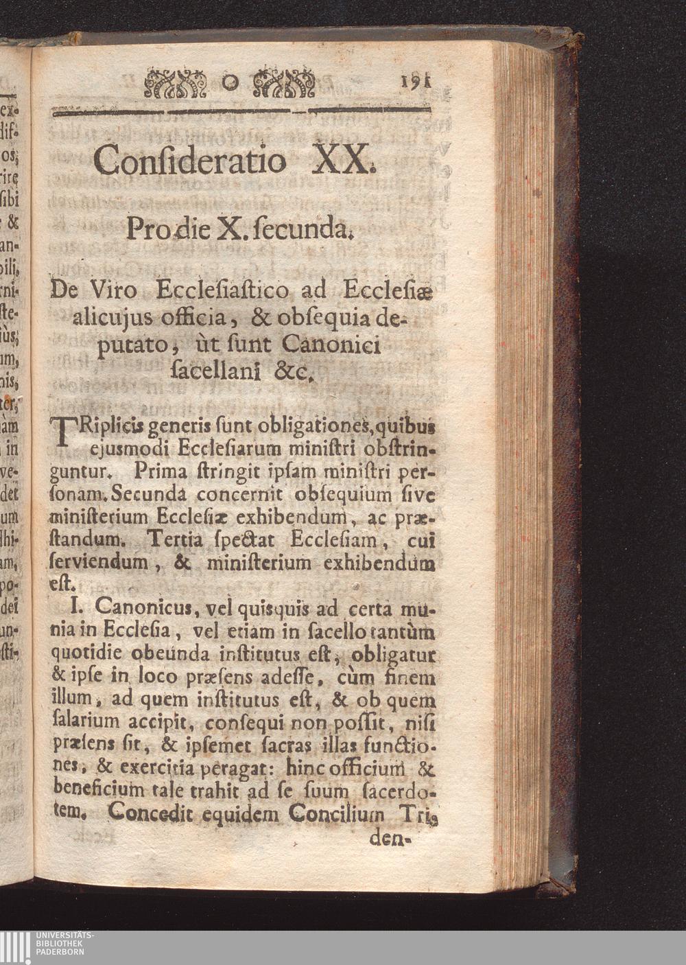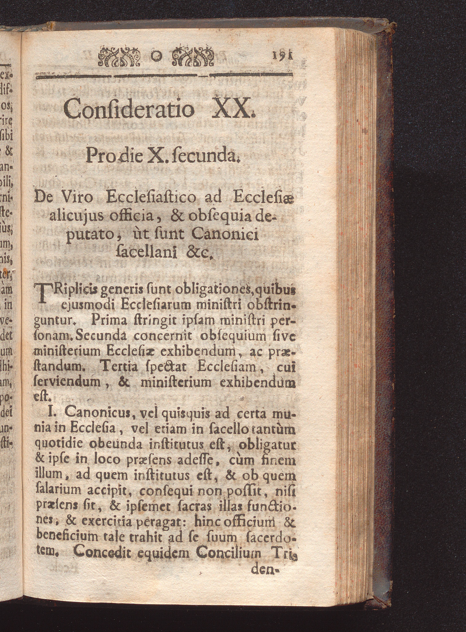Pro die decima, Consideratio secunda. De obligationibus Eccli. ùt Canonici.