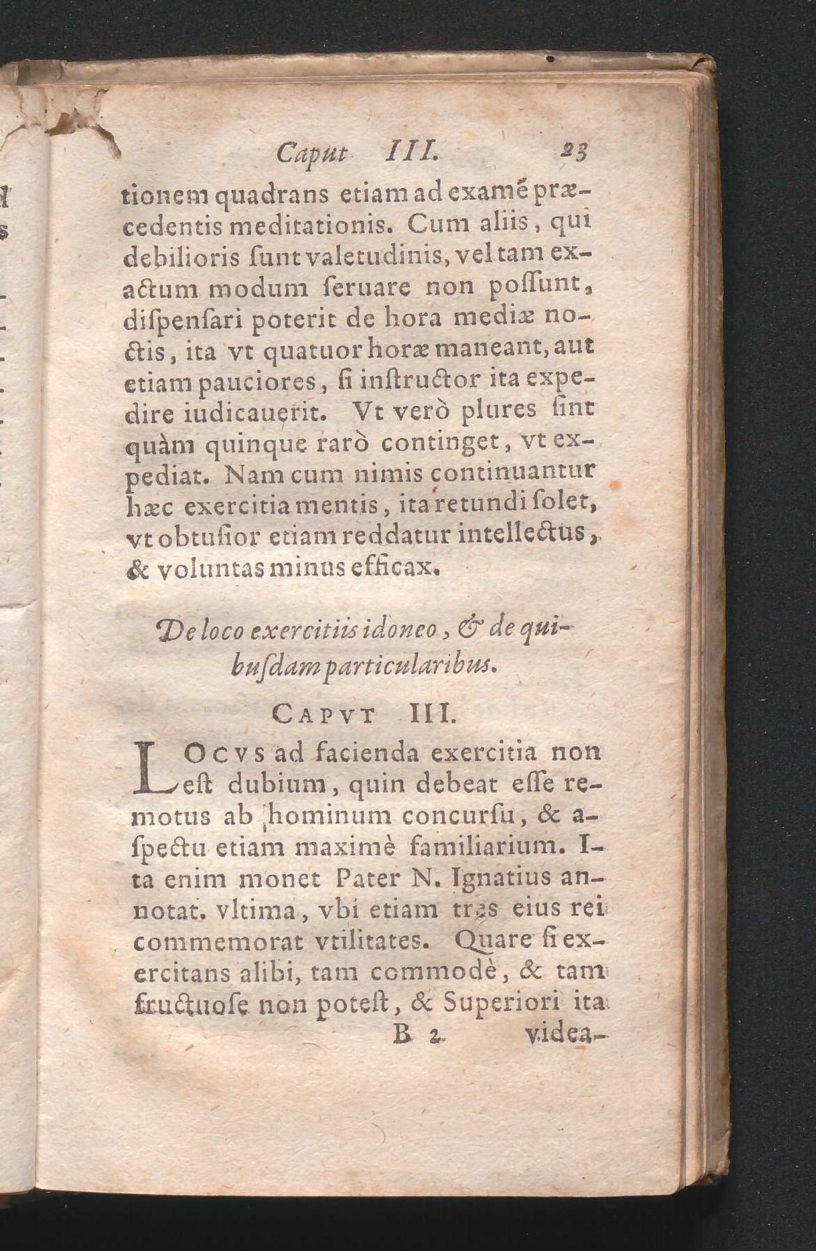 Capvt III. De loco exercitiis idoneo, & de quibusdam particularibus.