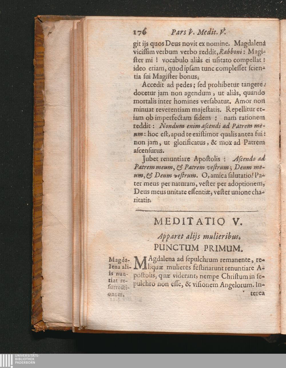 V. Pars Meditat. De Resurrectione, & sequentibus mysteriis.