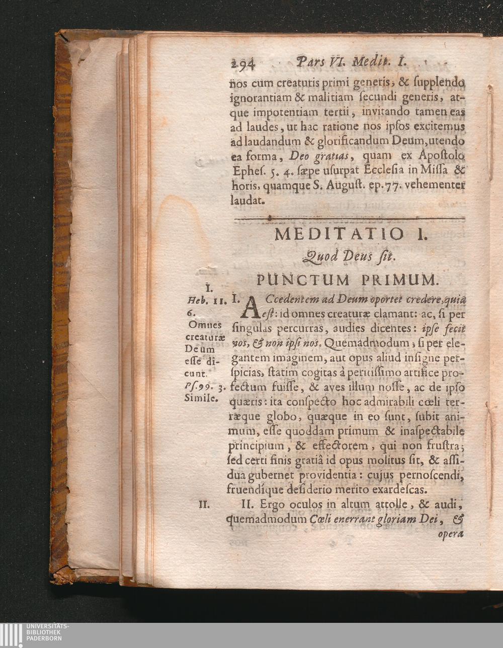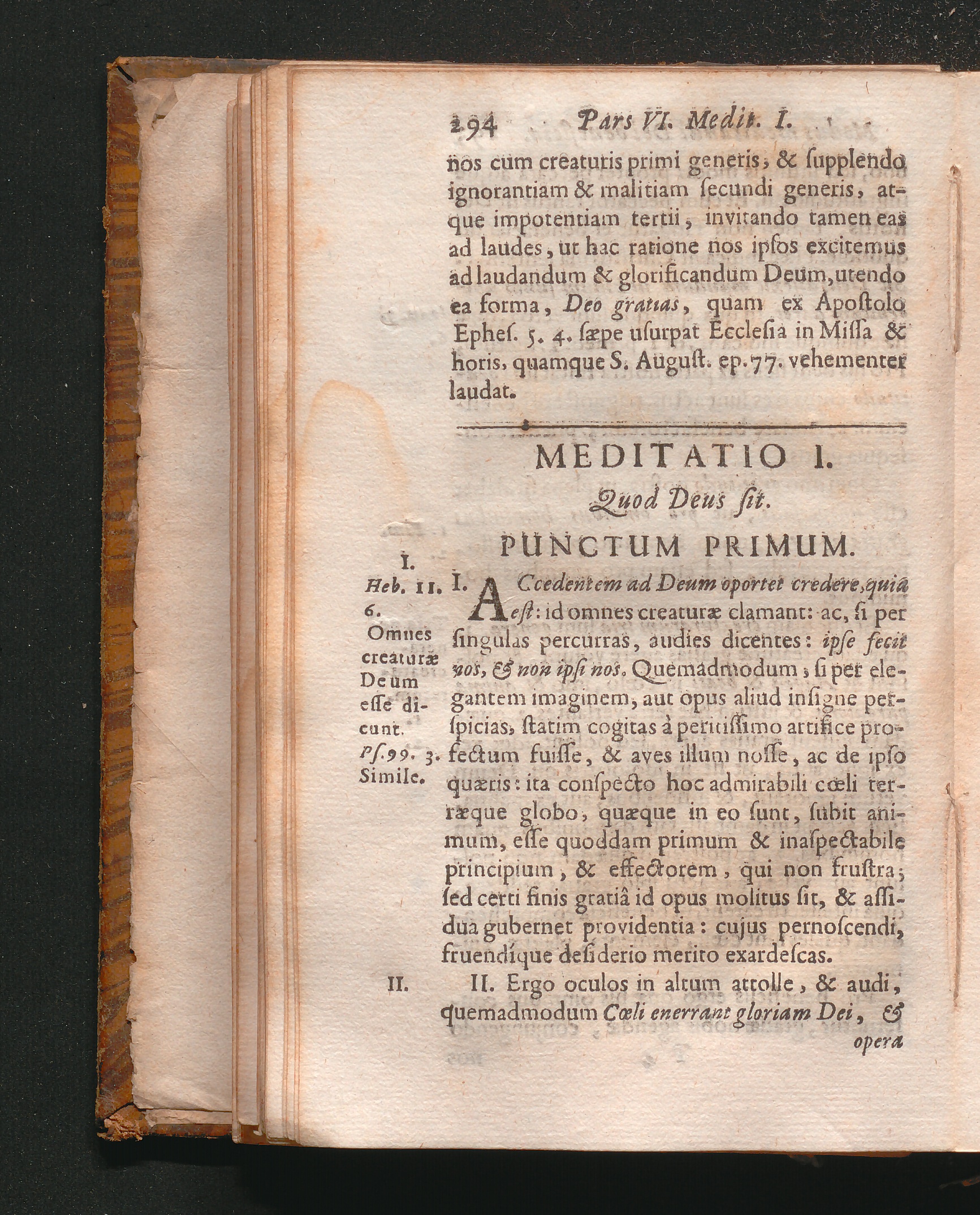 VI. Pars Meditat. De perfectionibus Dei, & beneficiis.