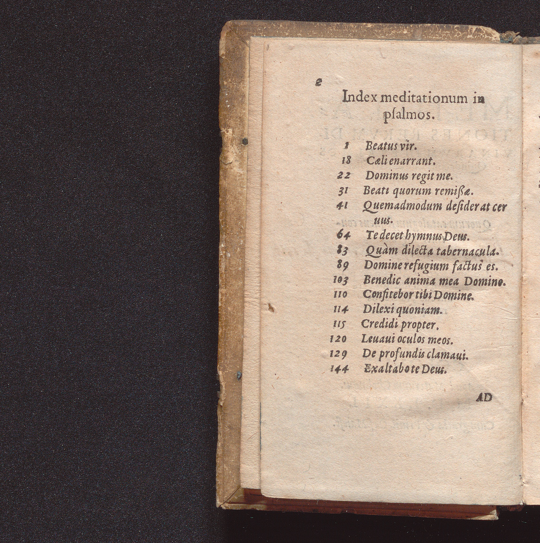 Medita=||tiones Rervm Di-||vinarvm In Psalmos|| Quindecim