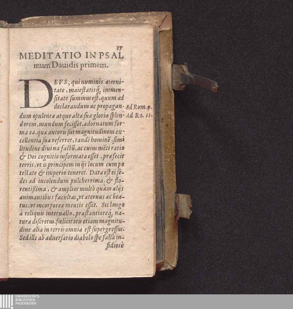 Medita=||tiones Rervm Di-||vinarvm In Psalmos|| Quindecim