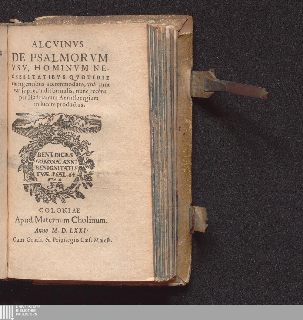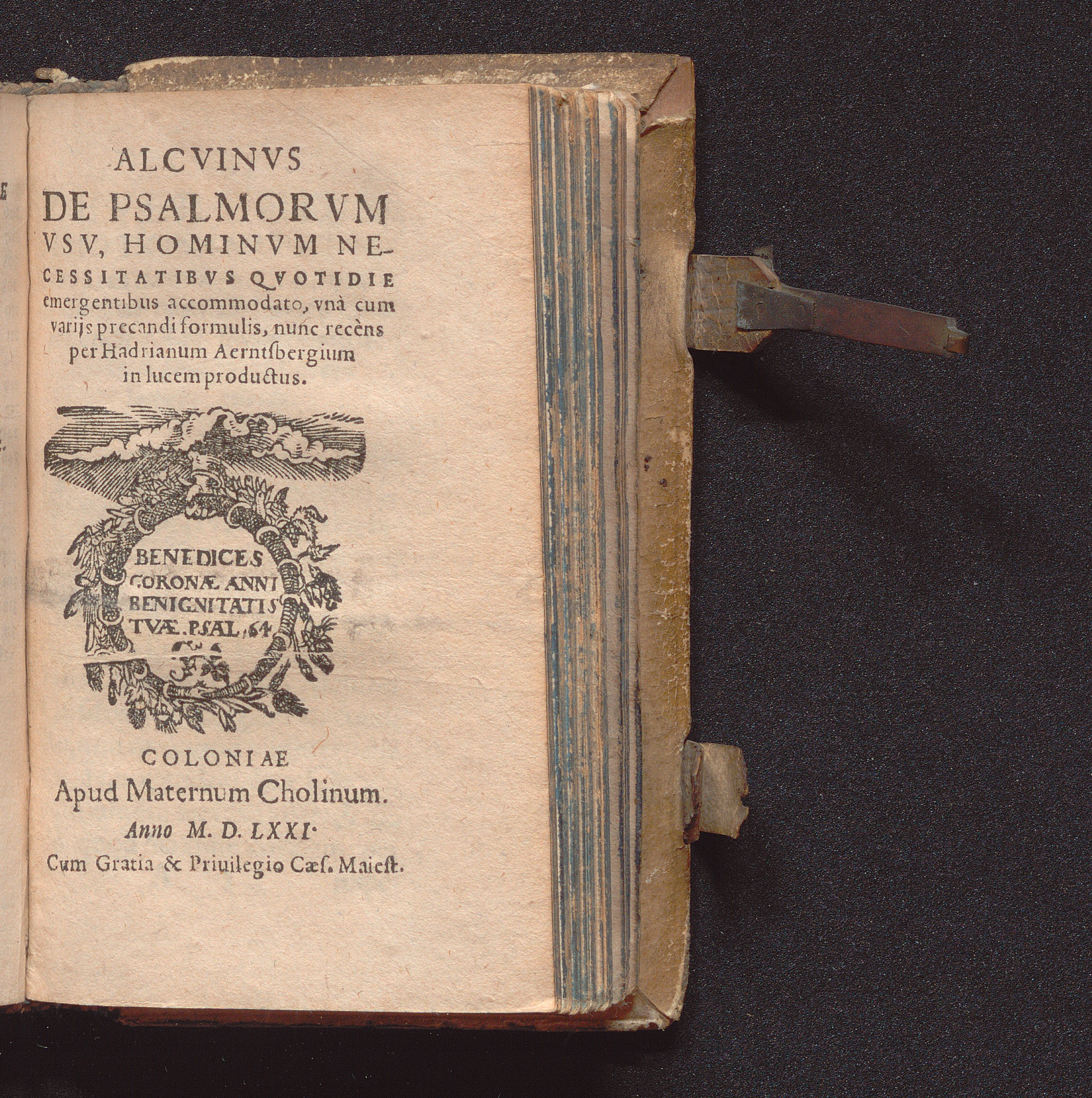 Alcvinvs De Psalmorvm Vsv, Hominvm Necessitatibvs Qvotidie emergentibus accomodato, vna cum varijs precandi formulis, nunc recèns per Hadrianum Aerntstbergium in lucem productus.