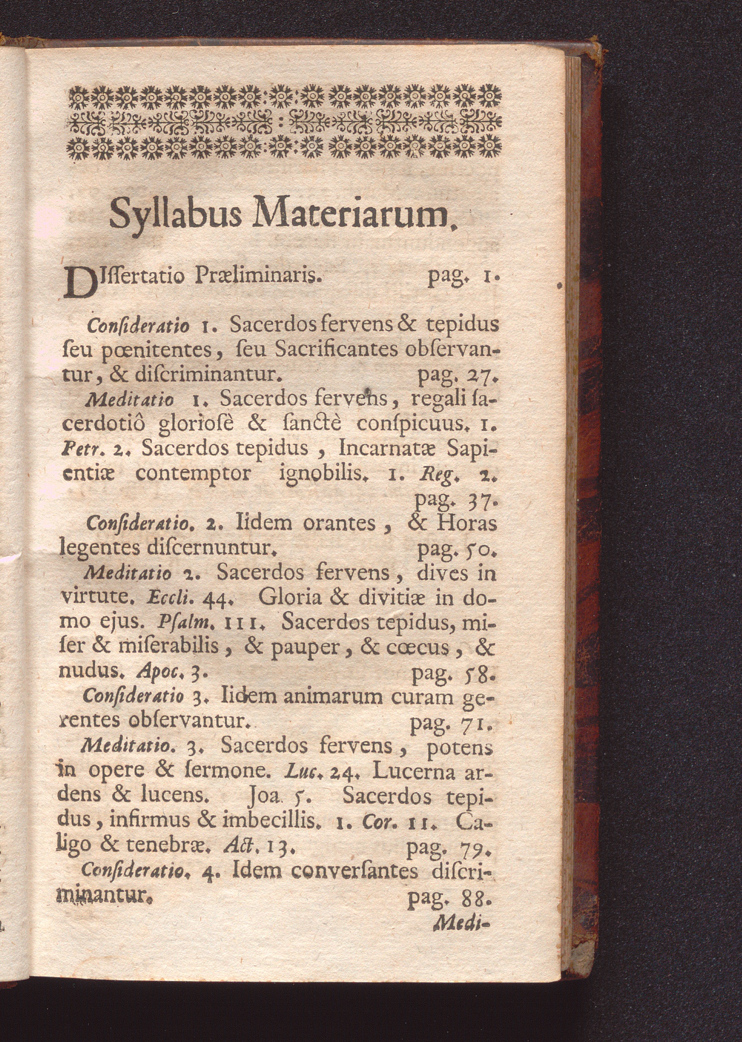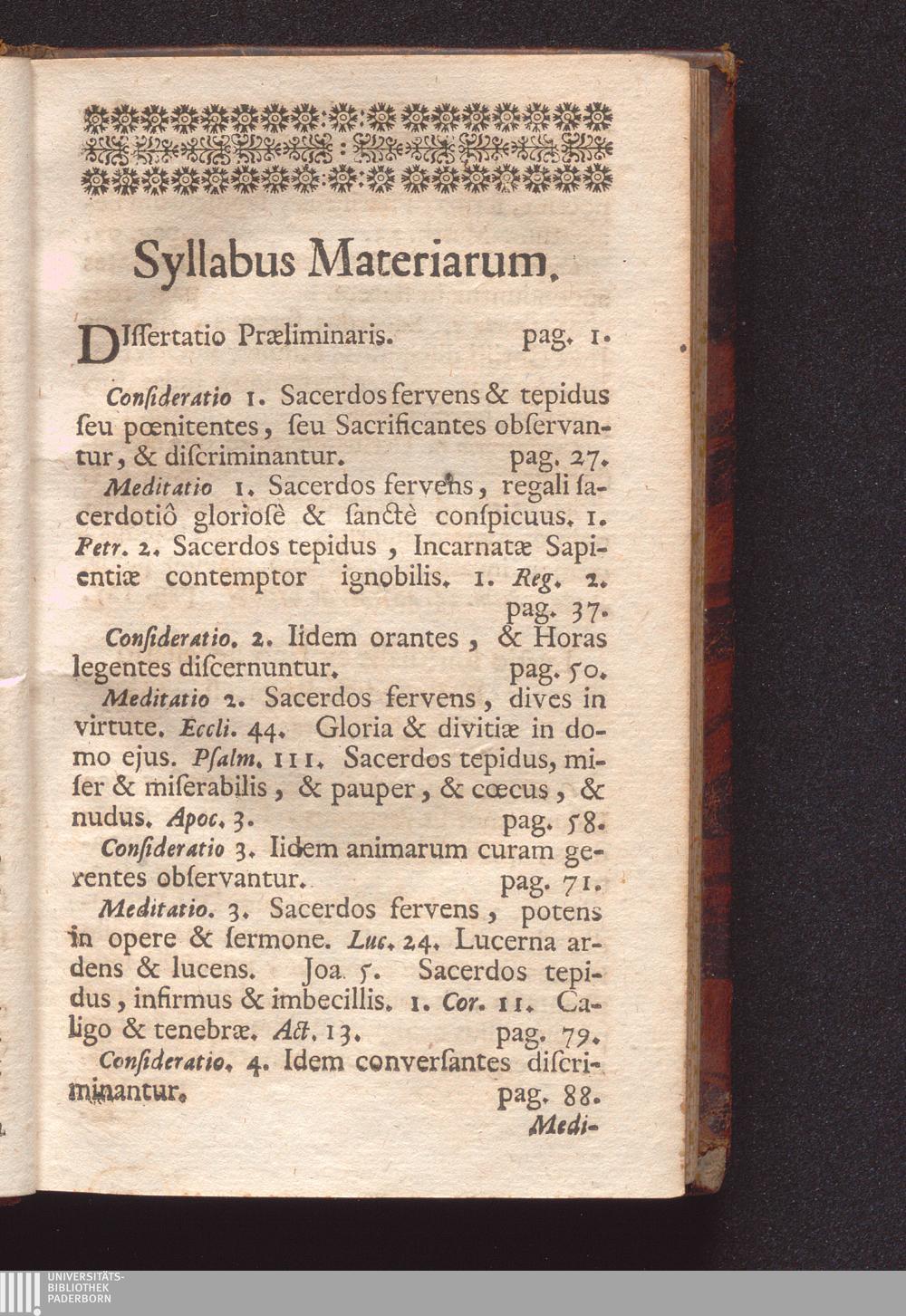 Sacerdos Aut Sanctus Aut Reprobus : Triduo Expensus Riedœschingæ In Secessu annuo Venerabilis Cleri Mense Junio MDCCXLII / Præside ac Directore P. Maximiliano Dufréne S. J. Serenissimo S. R. I. Principi Carolo Fürstenbergio à Sacratioribus Consiliis, & sacris Confessionibus