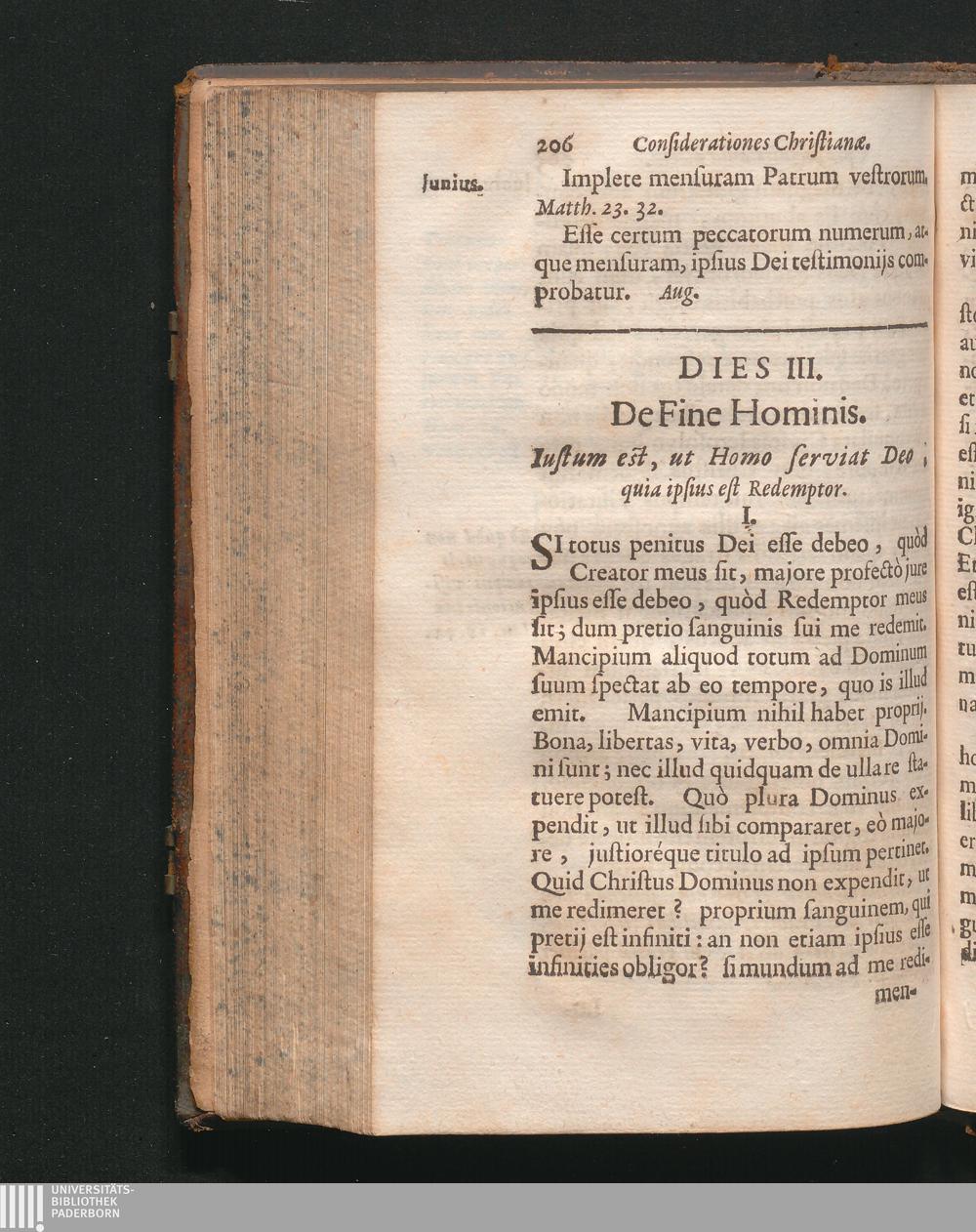 Dies 3. De fine hominis. Justum est, ut homo serviat Deo, quia ipsius est Redemp[...]